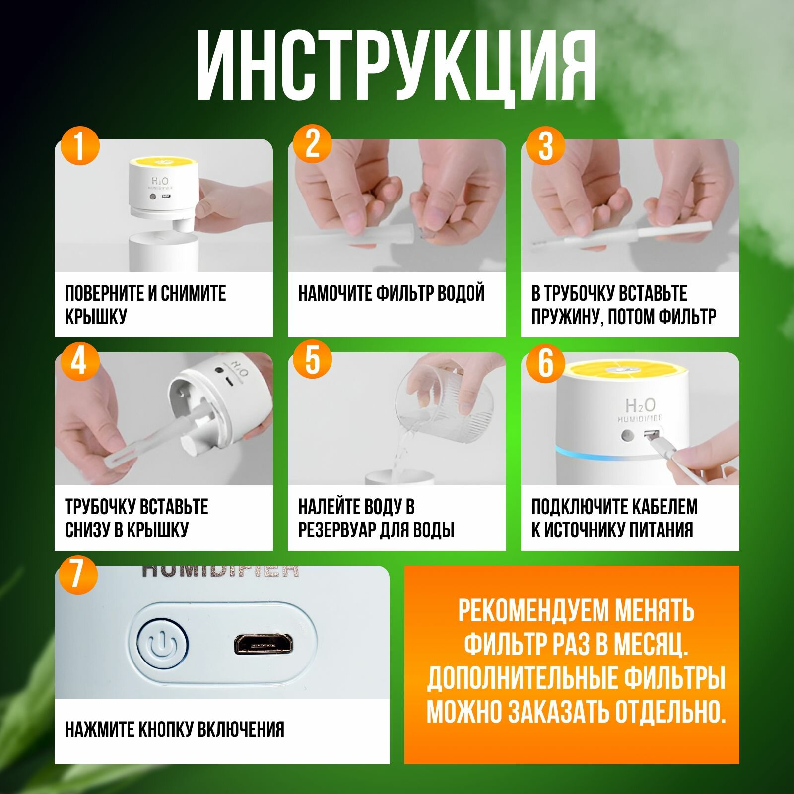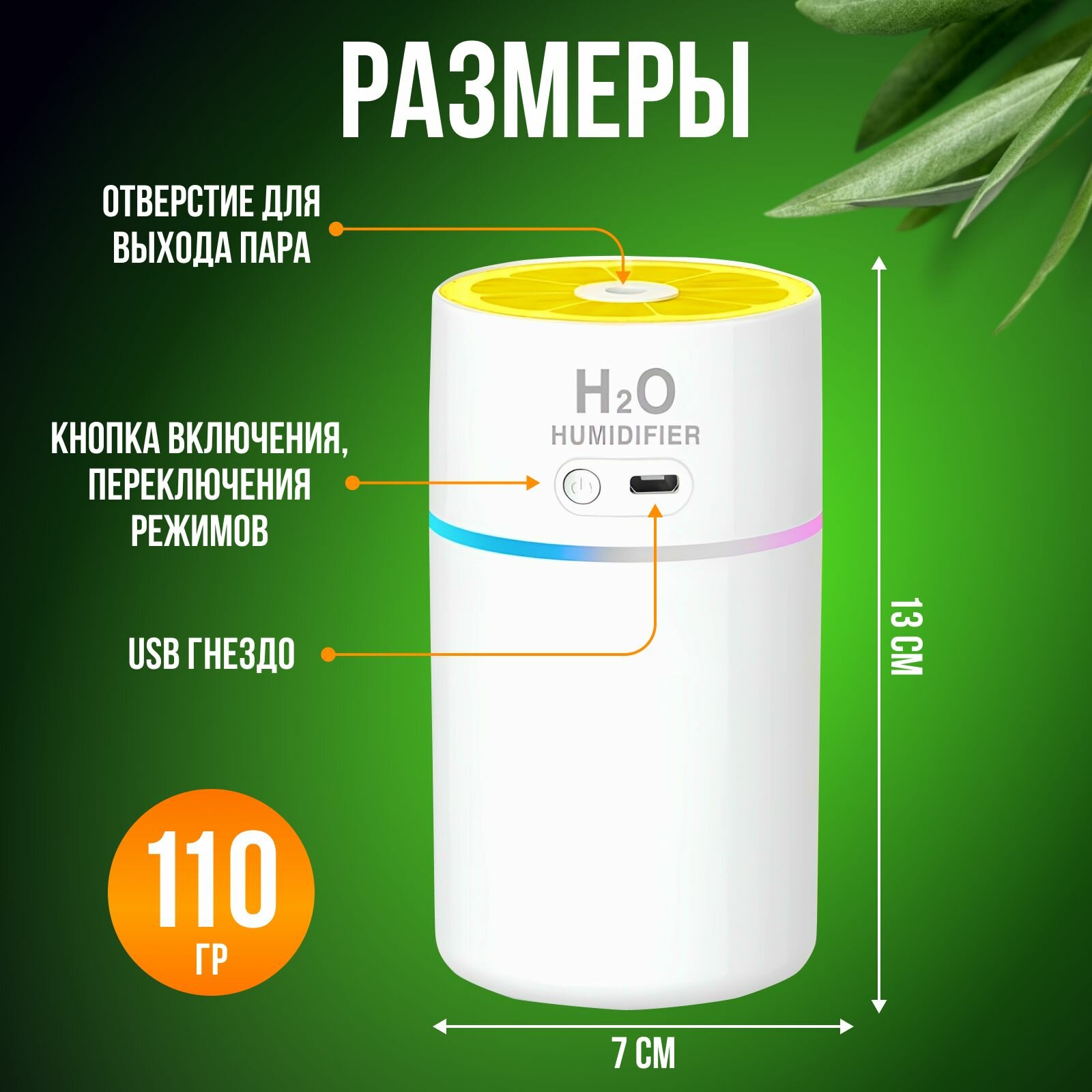 | Подробная комплектация | Увлажнитель, шнур USB |