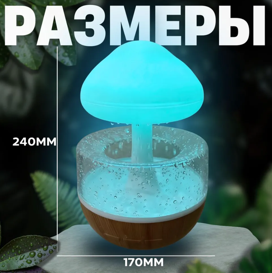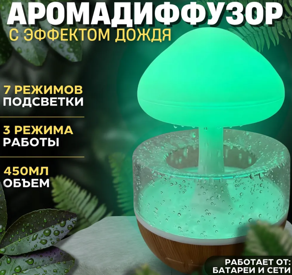 Аромадиффузор-ночник Облако / Дождь / Гриб с подсветкой с эффектом дождя интересное: