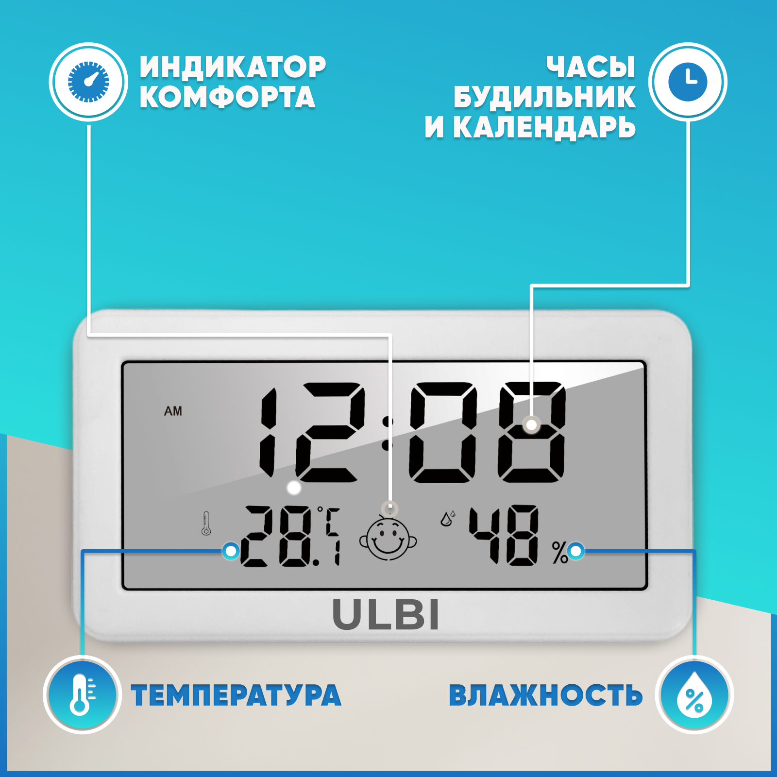 Гигрометр термометр метеостанция ULBI H3 с большим экраном календарем и часами / Погодная станция / Цифровой термометр гигрометр / ULBI H3