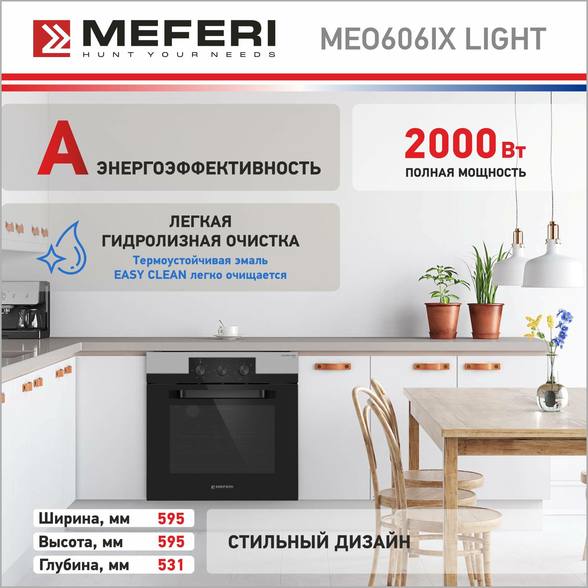 Духовой шкаф электрический Meferi MEO606IX LIGHT, нержавеющая сталь