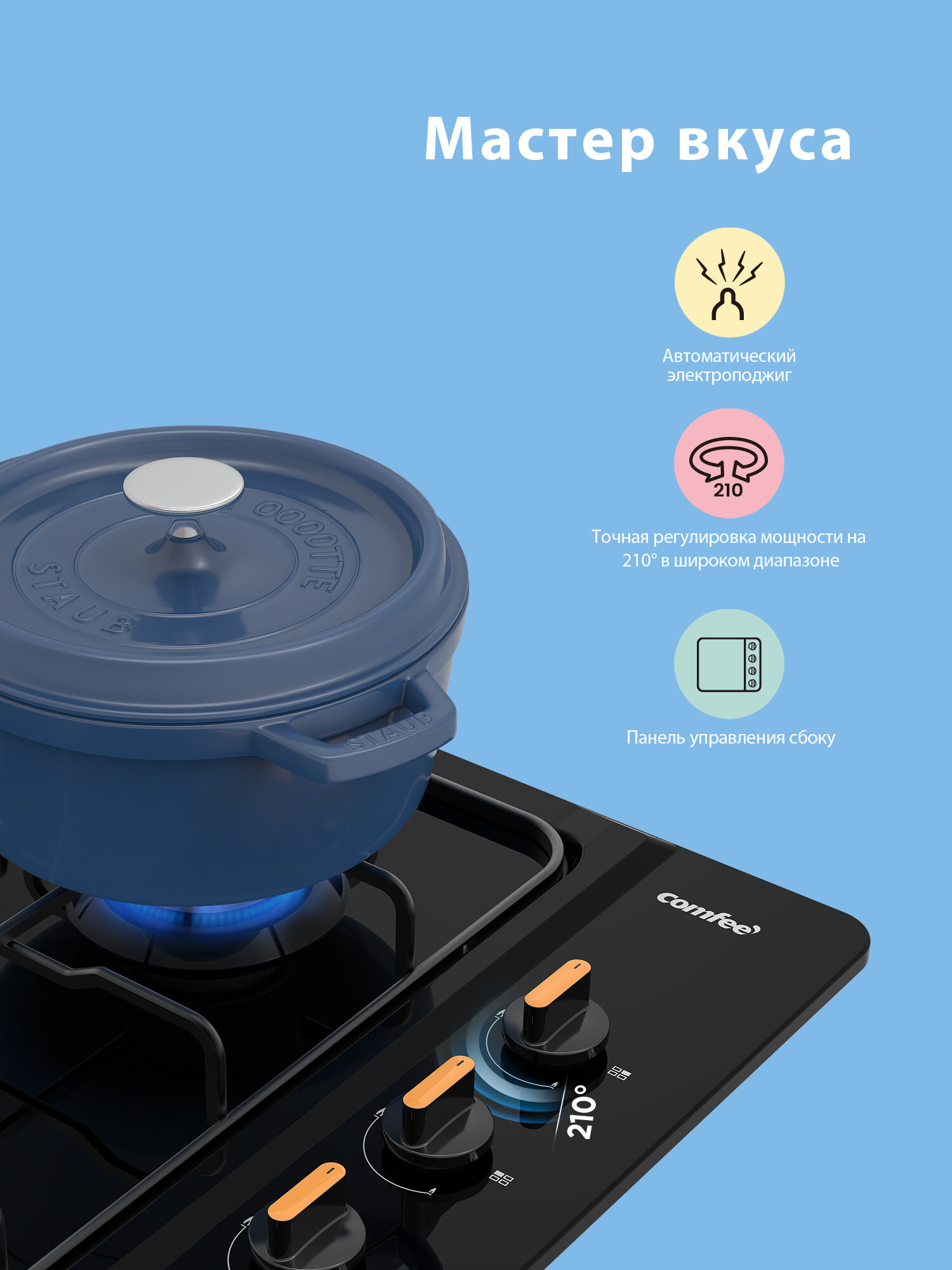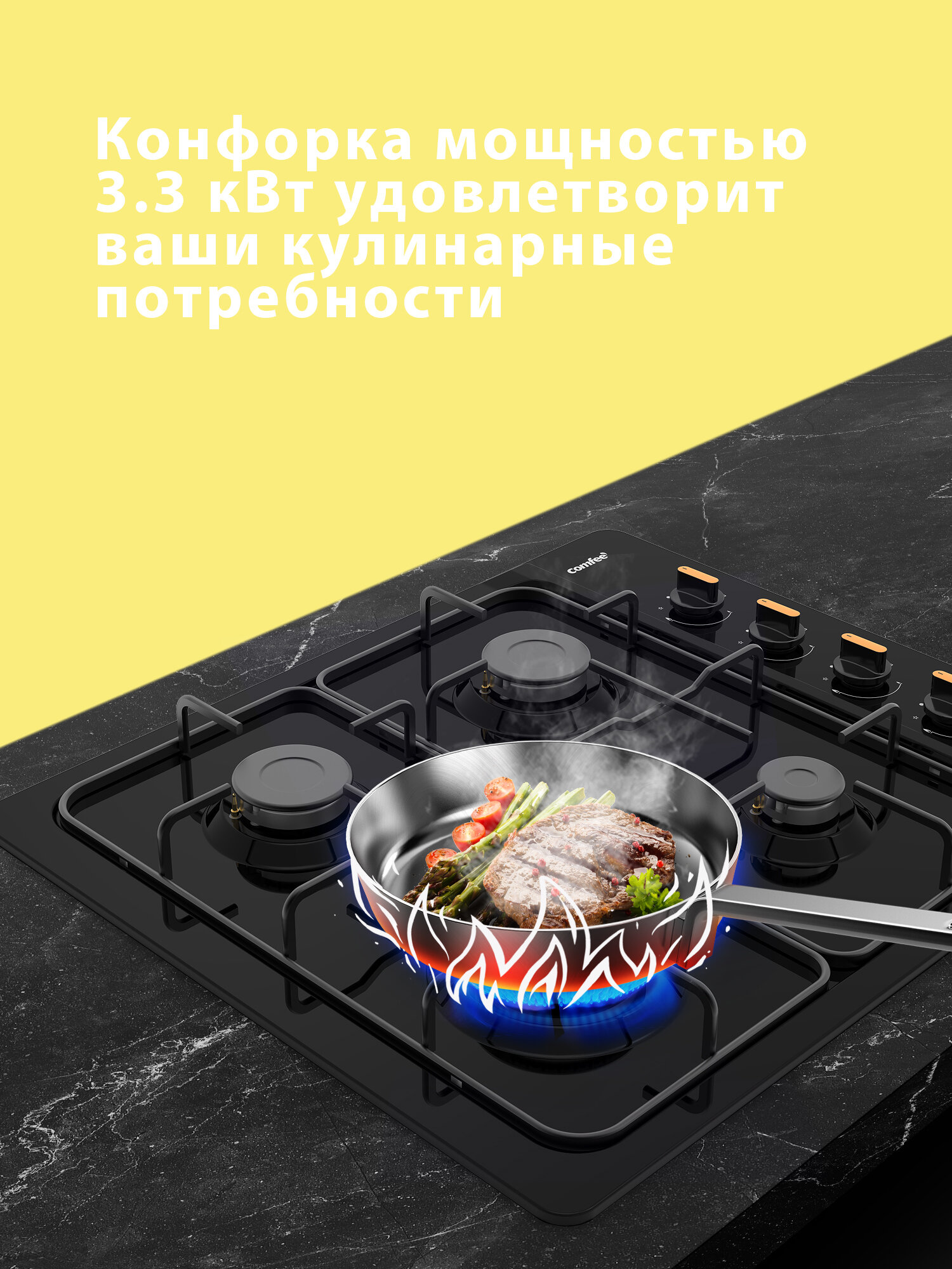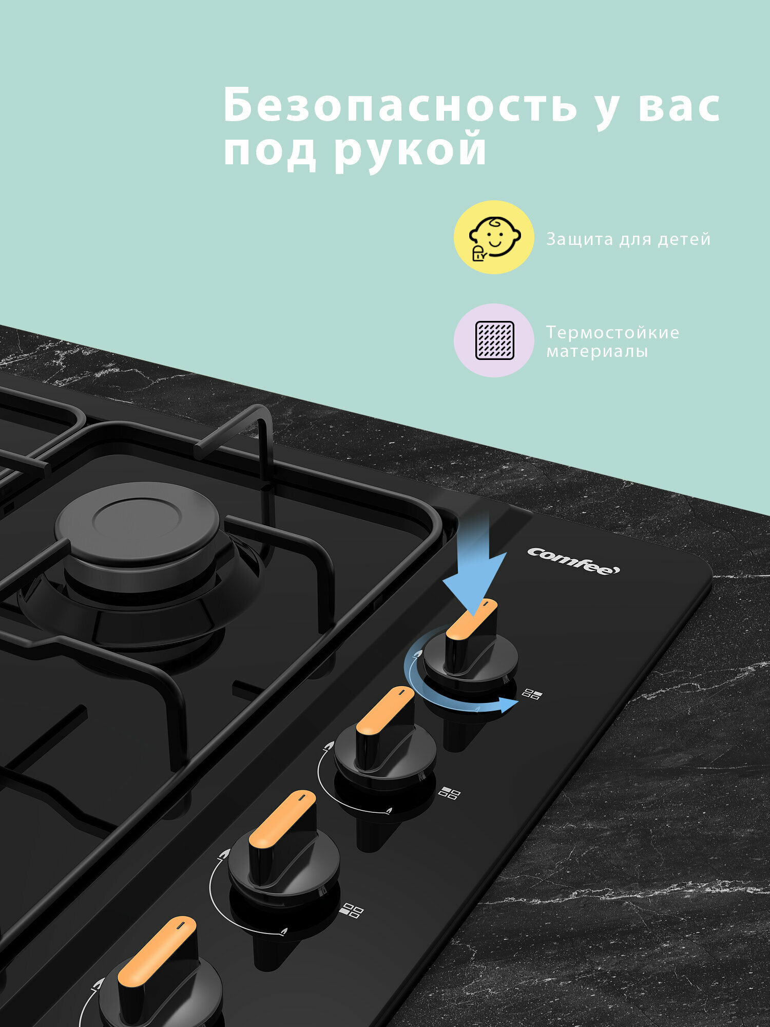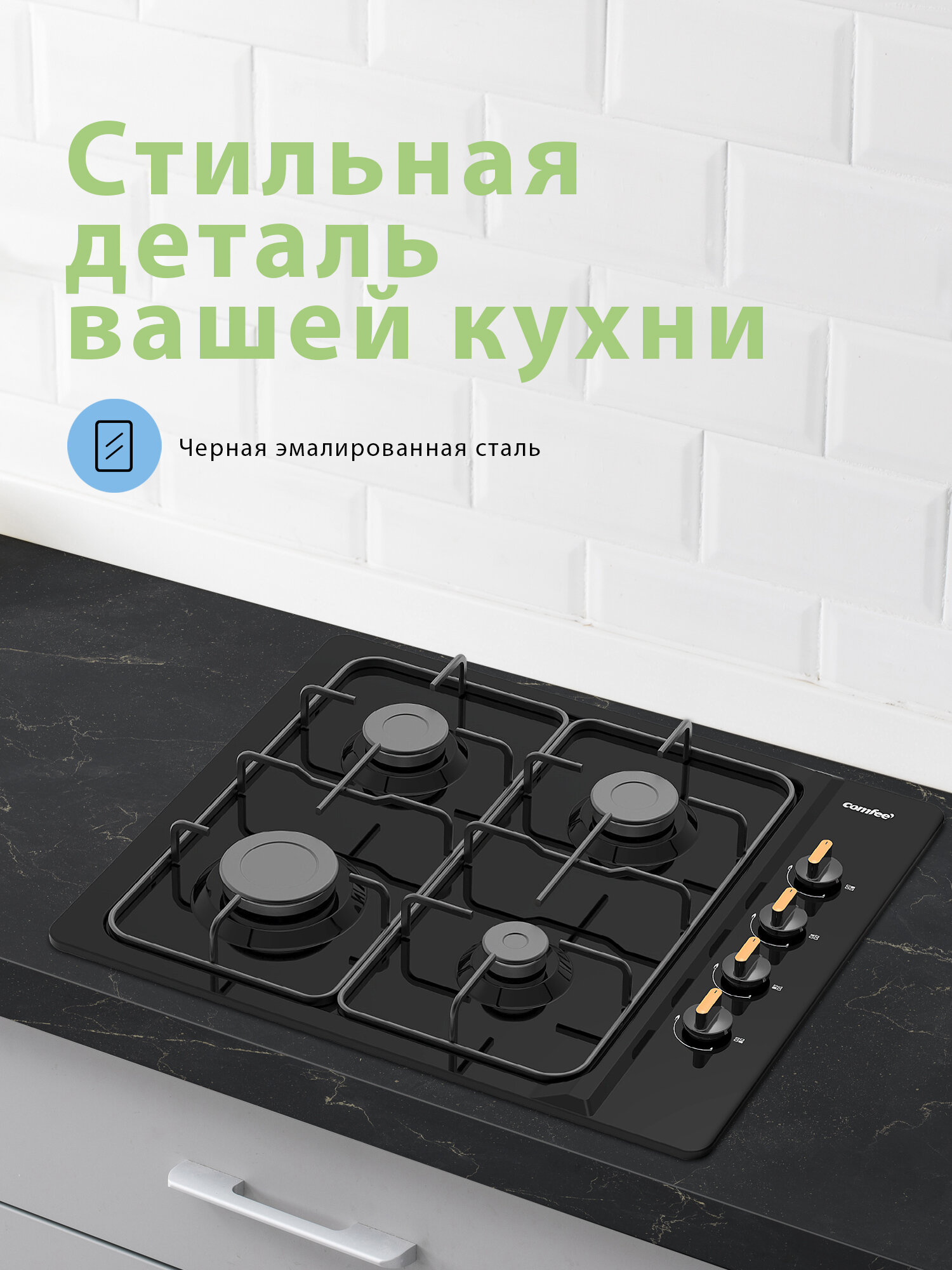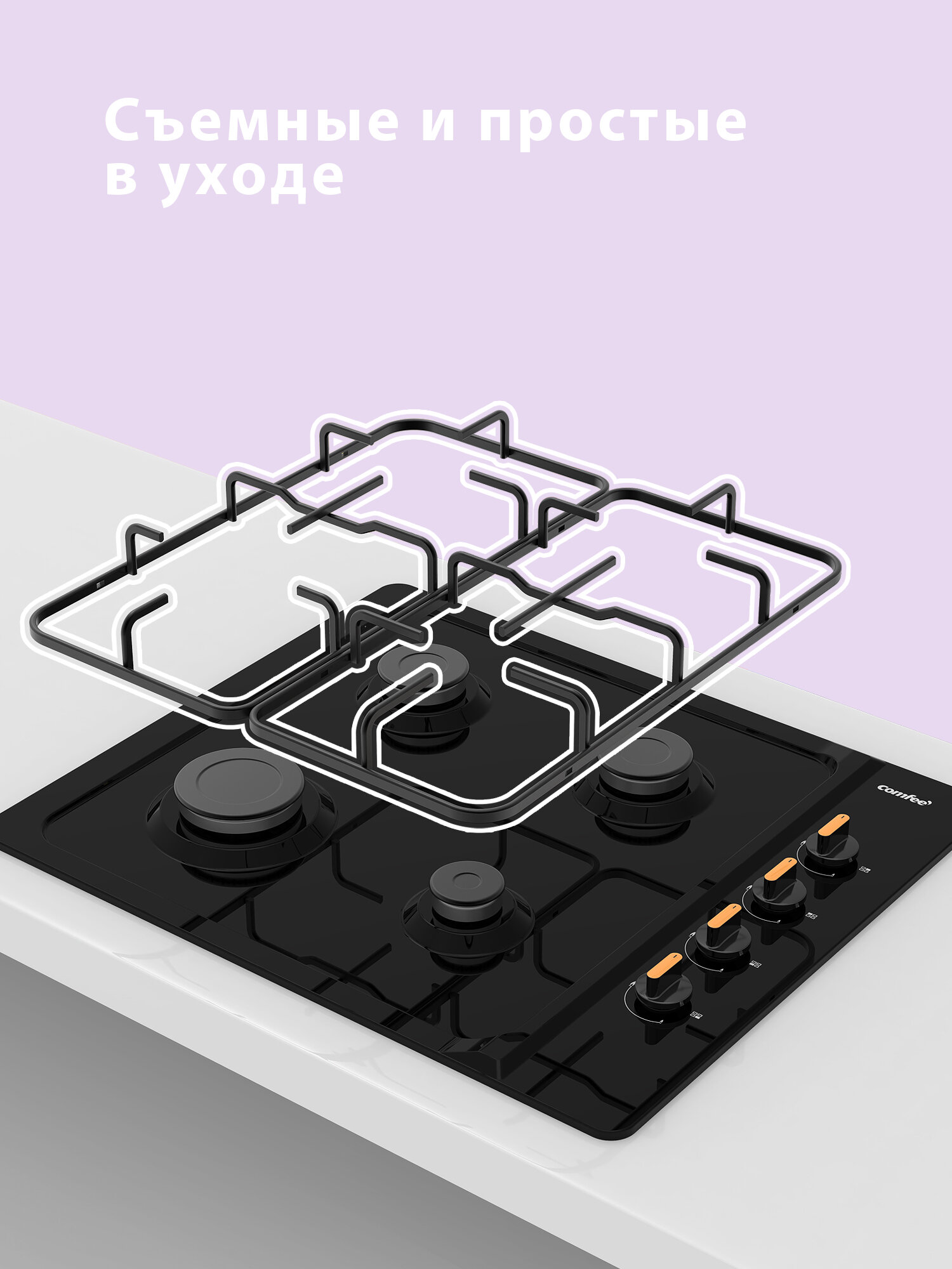 Встраиваемая газовая варочная панель Comfee CGH600B, 4 конфорки, черная эмаль интересное: