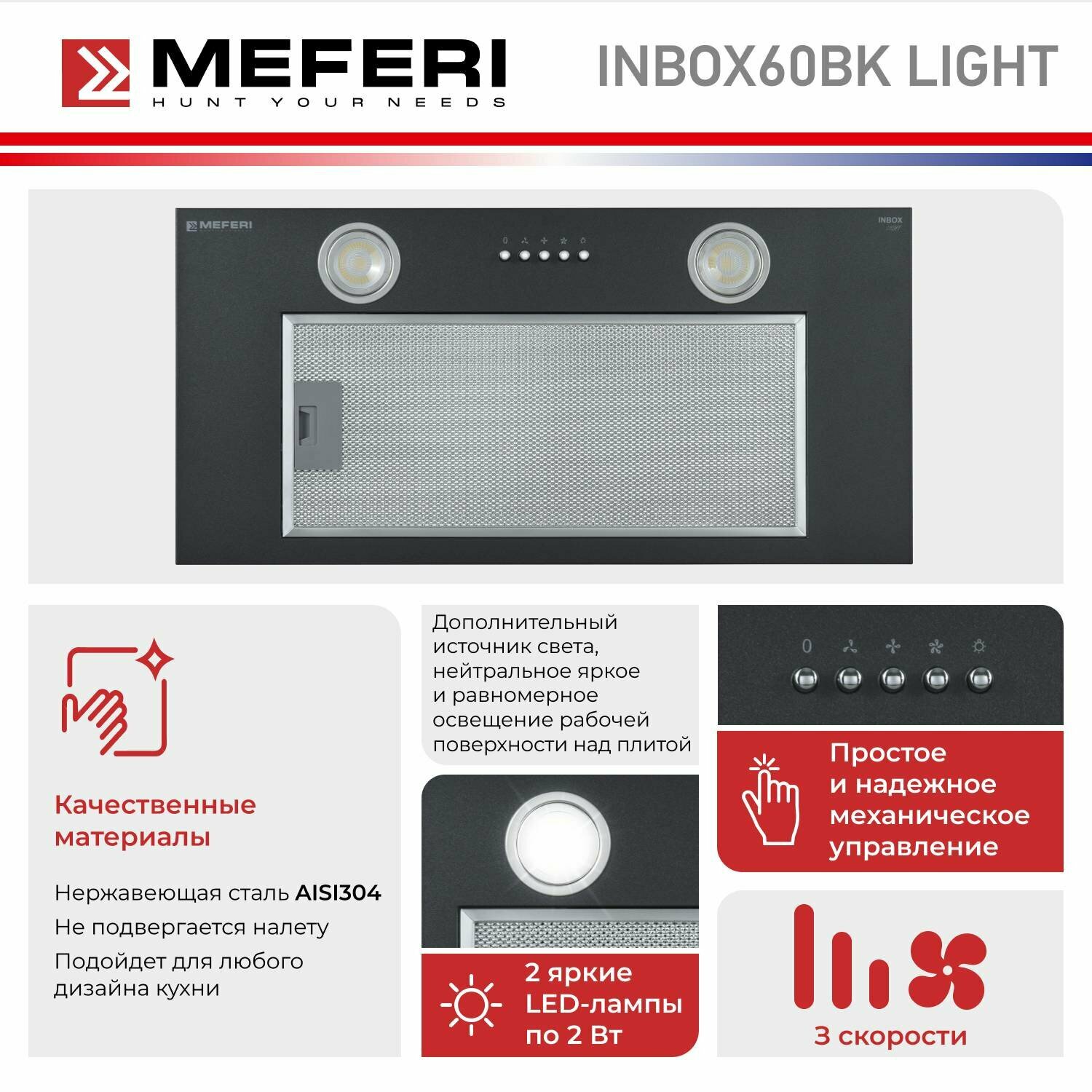 Полновстраиваемая вытяжка MEFERI INBOX60BK LIGHT, 650м3/ч, черный интересное: