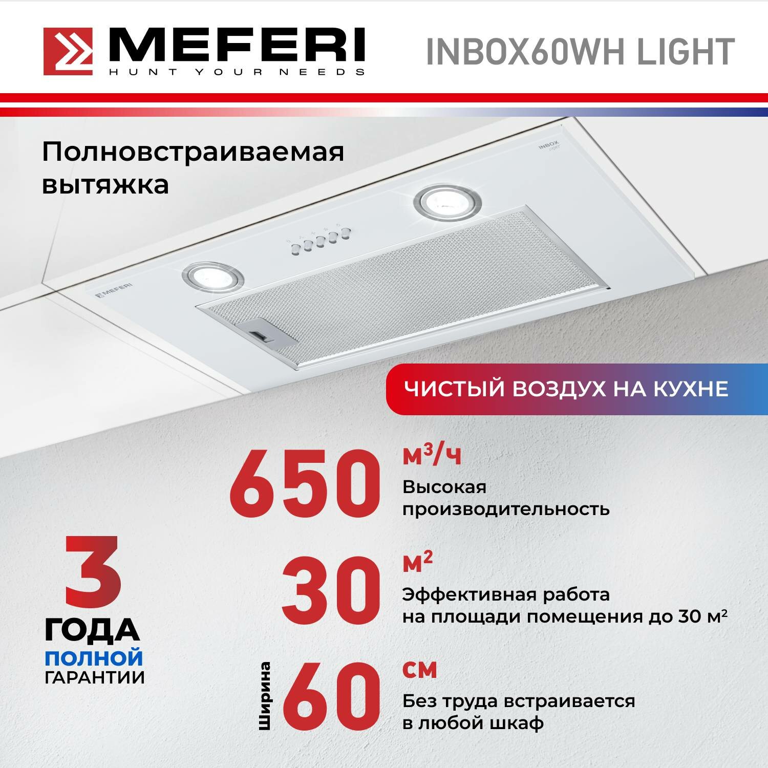 Полновстраиваемая вытяжка MEFERI INBOX60WH LIGHT, белый интересное: