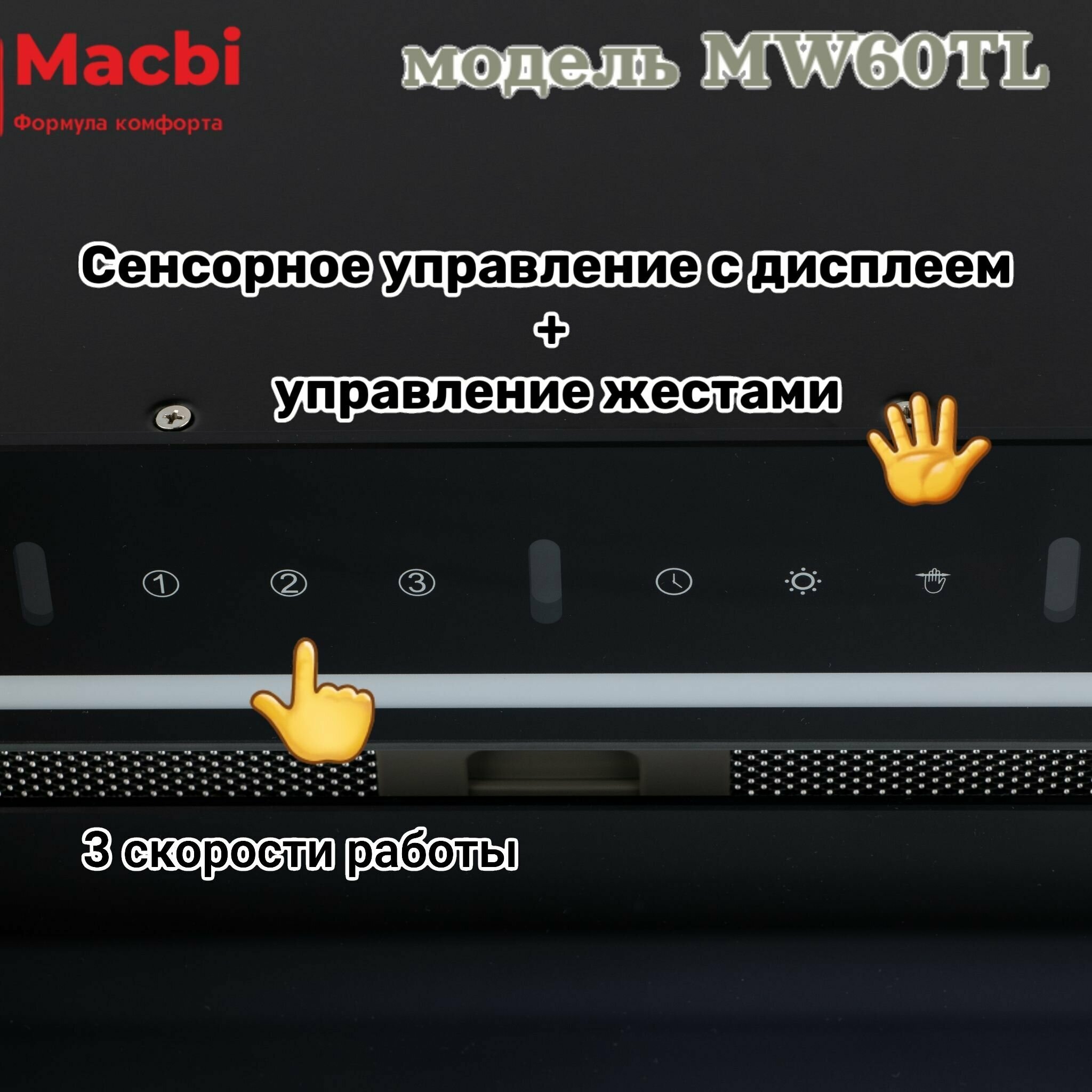 Вытяжка кухонная MACBI встраиваемая MW60TL BLACK 1200м3/ч Черная (управление жестами) интересное: