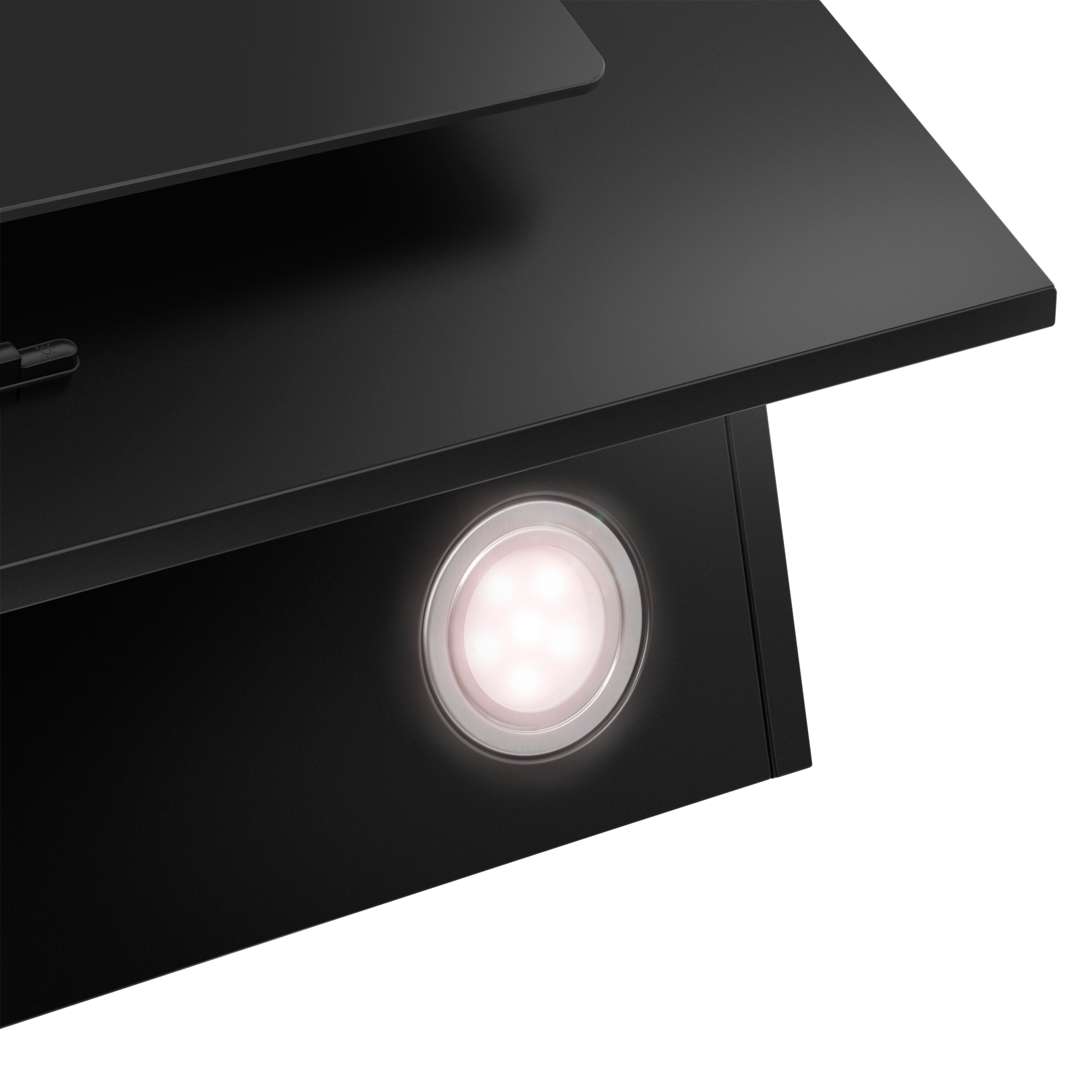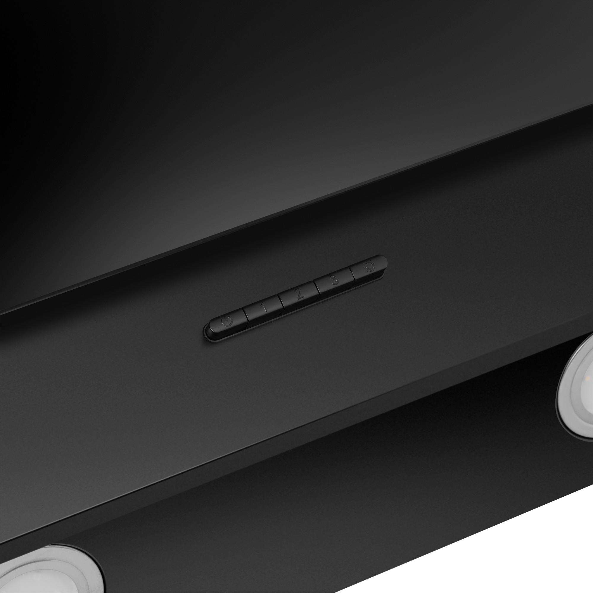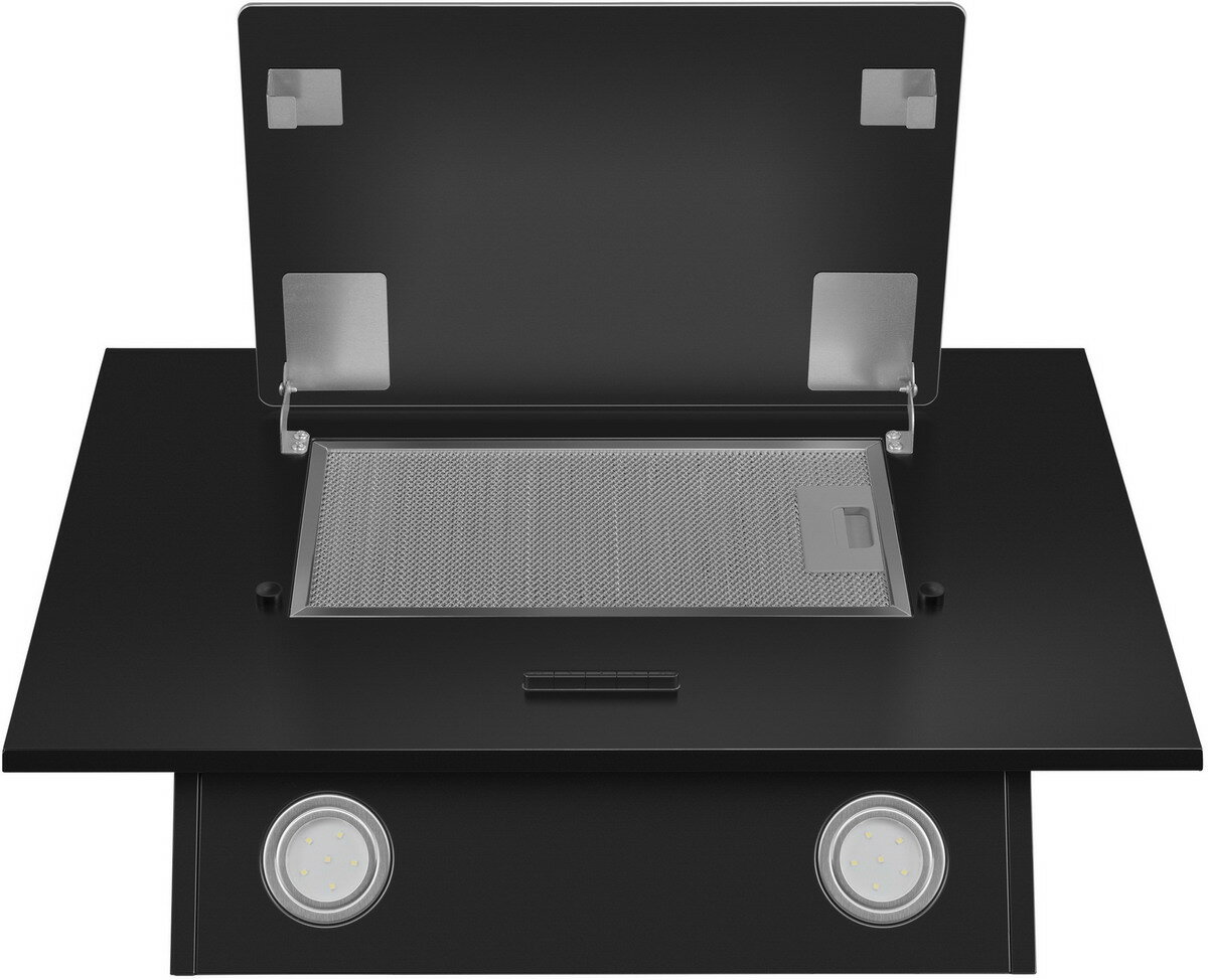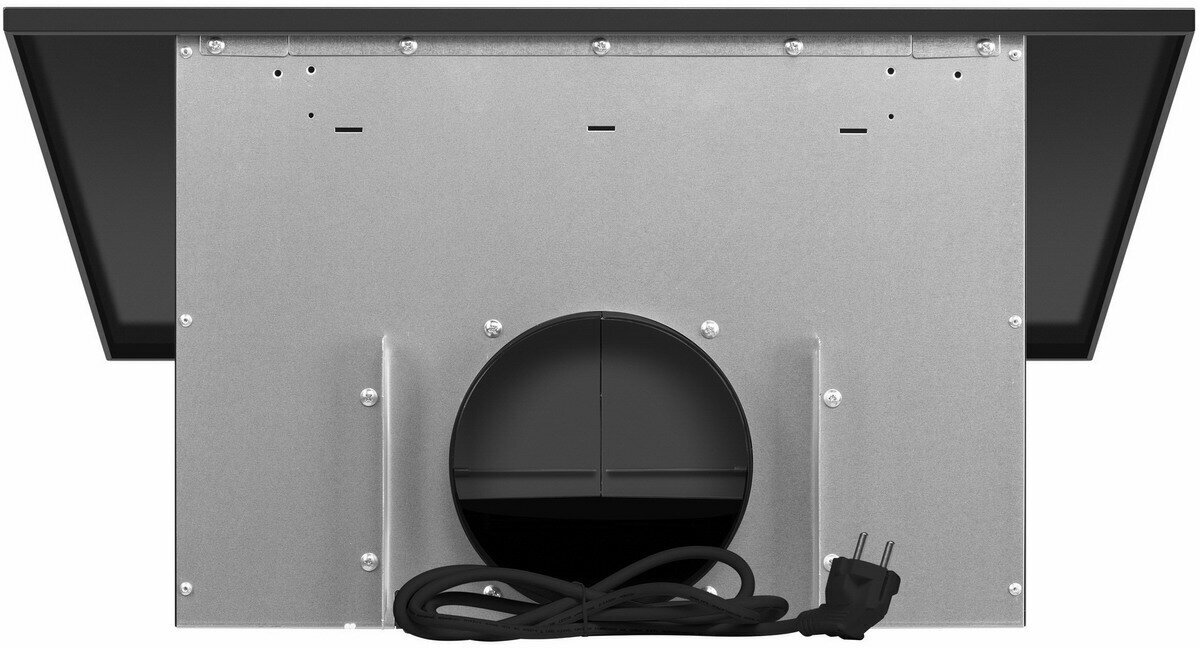 Кухонная вытяжка MAUNFELD Tower A 60 наклонная черная, 2 скорости, 100 Вт, 650 м³/час, уровень шума 66 дБ, интенсивный режим, отвод и рециркуляция, периметральное всасывание, светодиодная подсветка
