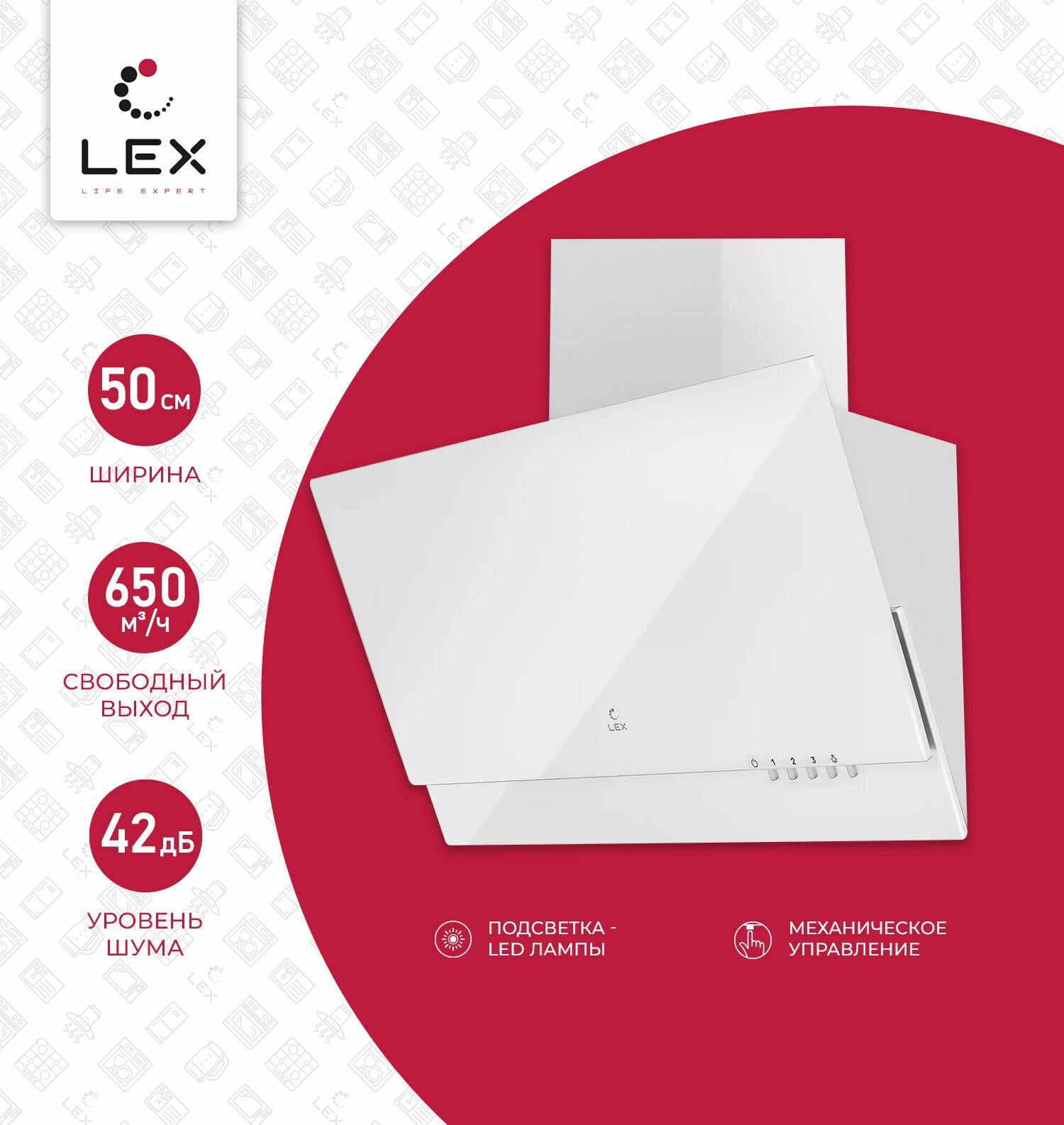 Купить Наклонная кухонная вытяжка LEX MERA 500 WHITE, 50см,отделка: стекло, кнопочное управление, LED лампы, белый.