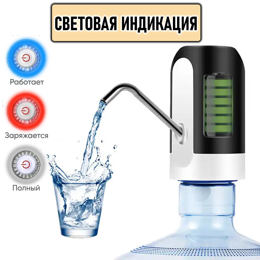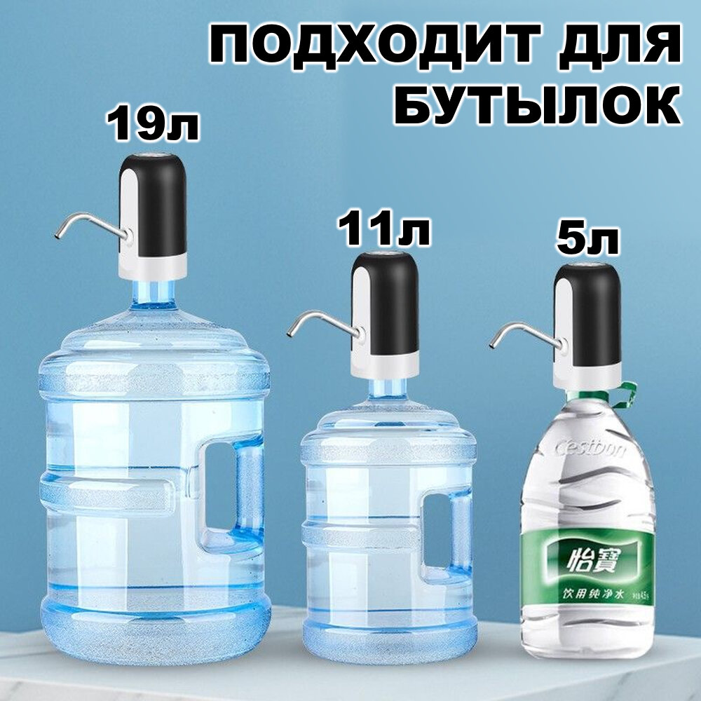 Помпа для воды электрическая, на бутыль 5, 11, 19 литров. Автоматический дозатор для воды. Цвет: черный. интересное: