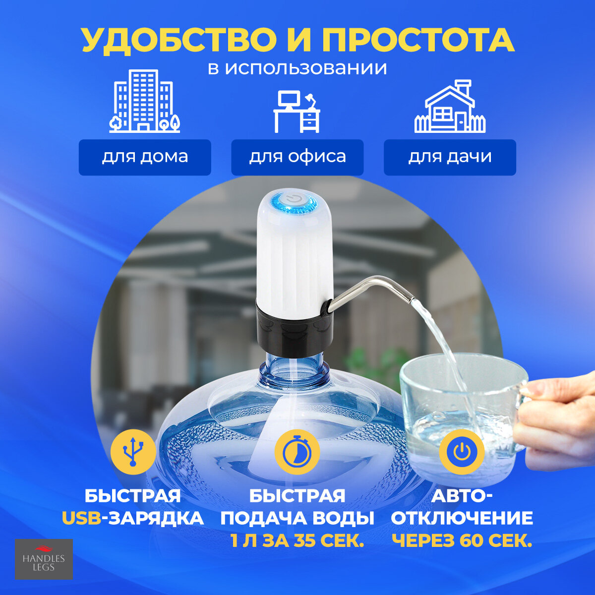 Электрическая помпа для воды , установка на бутылку, белая BM