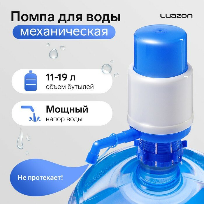 Помпа для воды Luazon, механическая, средняя, под бутыль от 11 до 19 л, голубая (1шт.) интересное:
