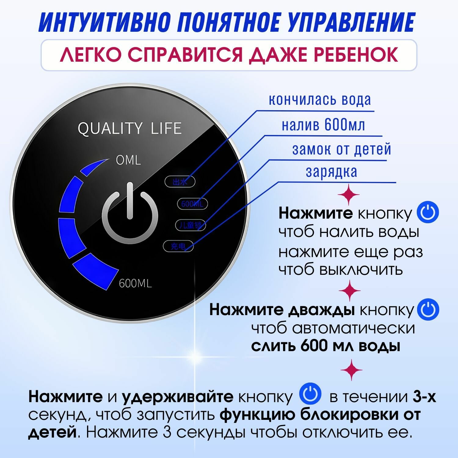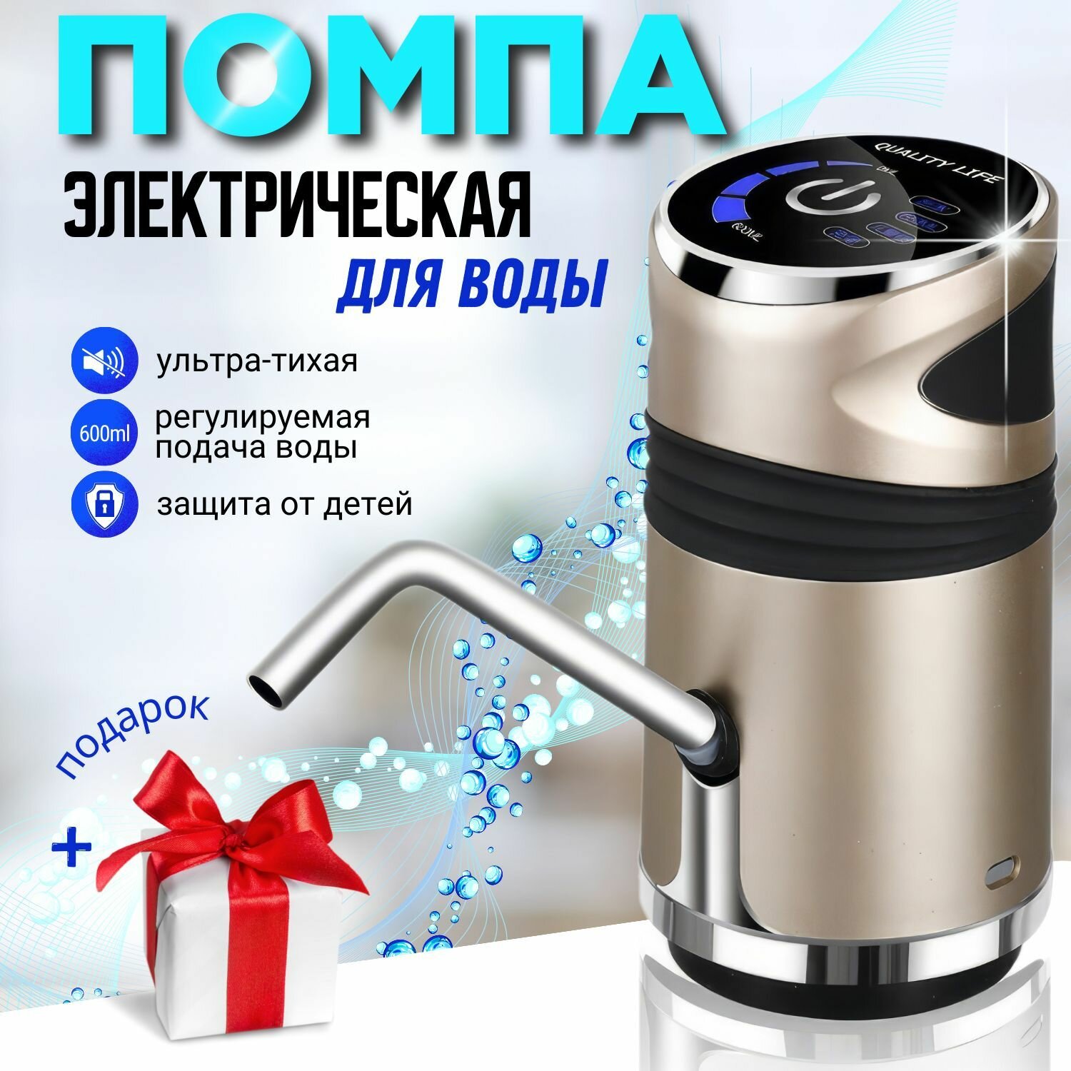 Помпа для воды электрическая на бутыль 19 литров с подсветкой интересное: