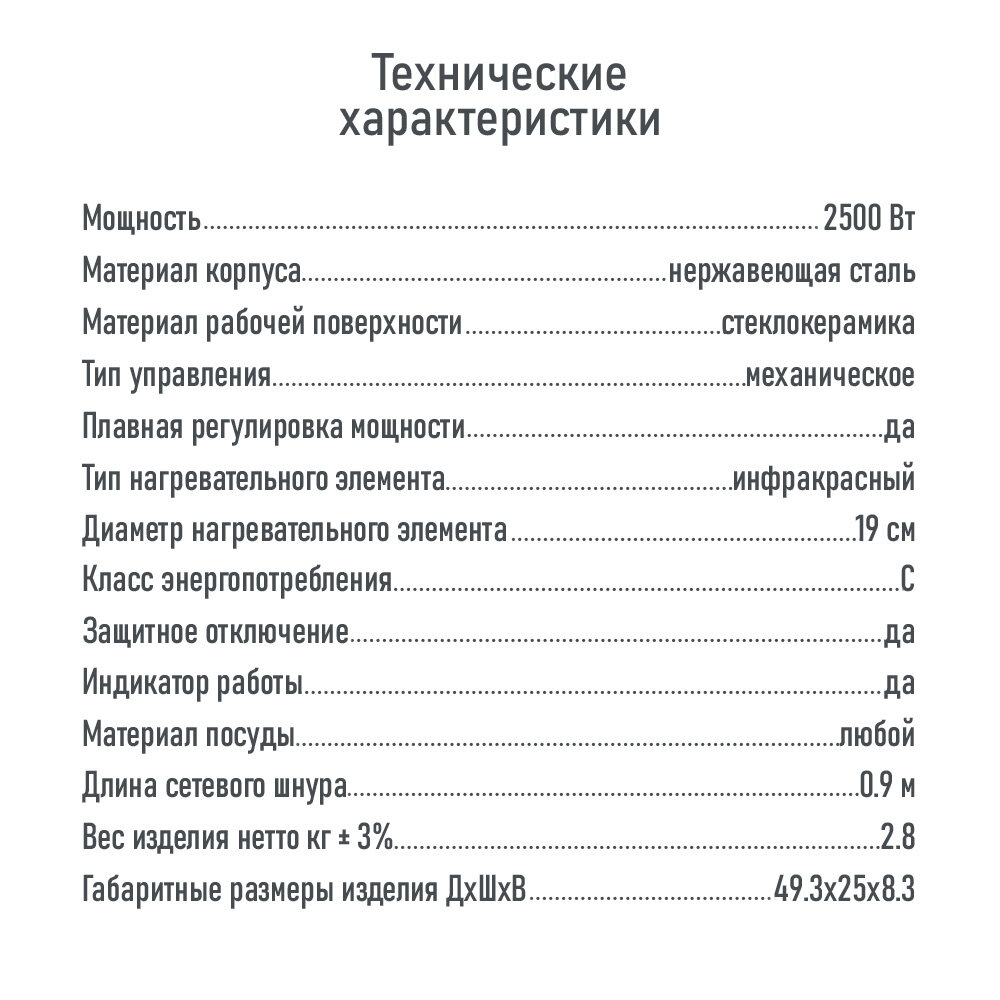 | Общее количество конфорок | 2 |