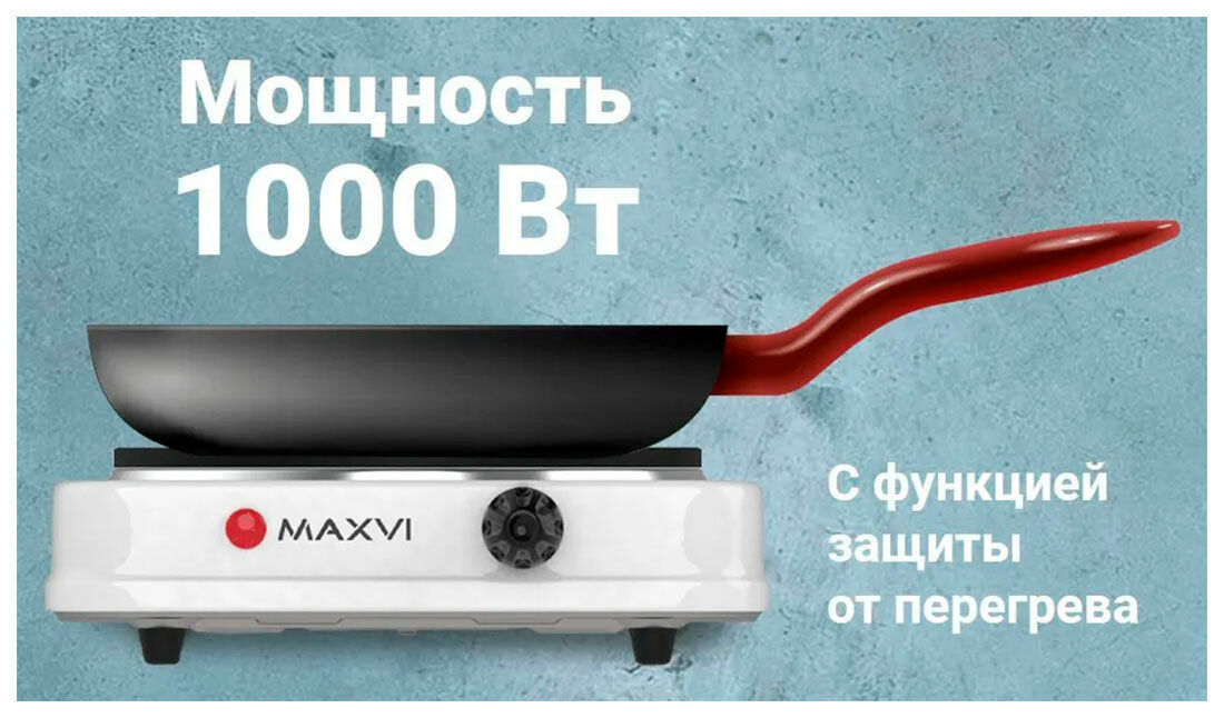 Плитка электрическая настольная MAXVI HE111, 1000 Вт, 1 конфорка, черный