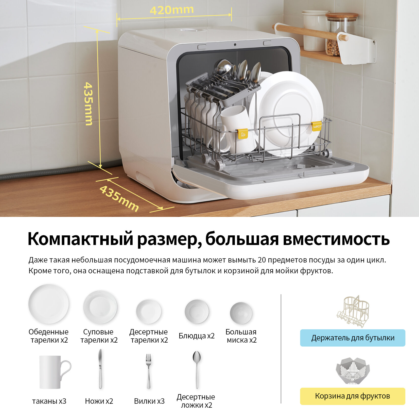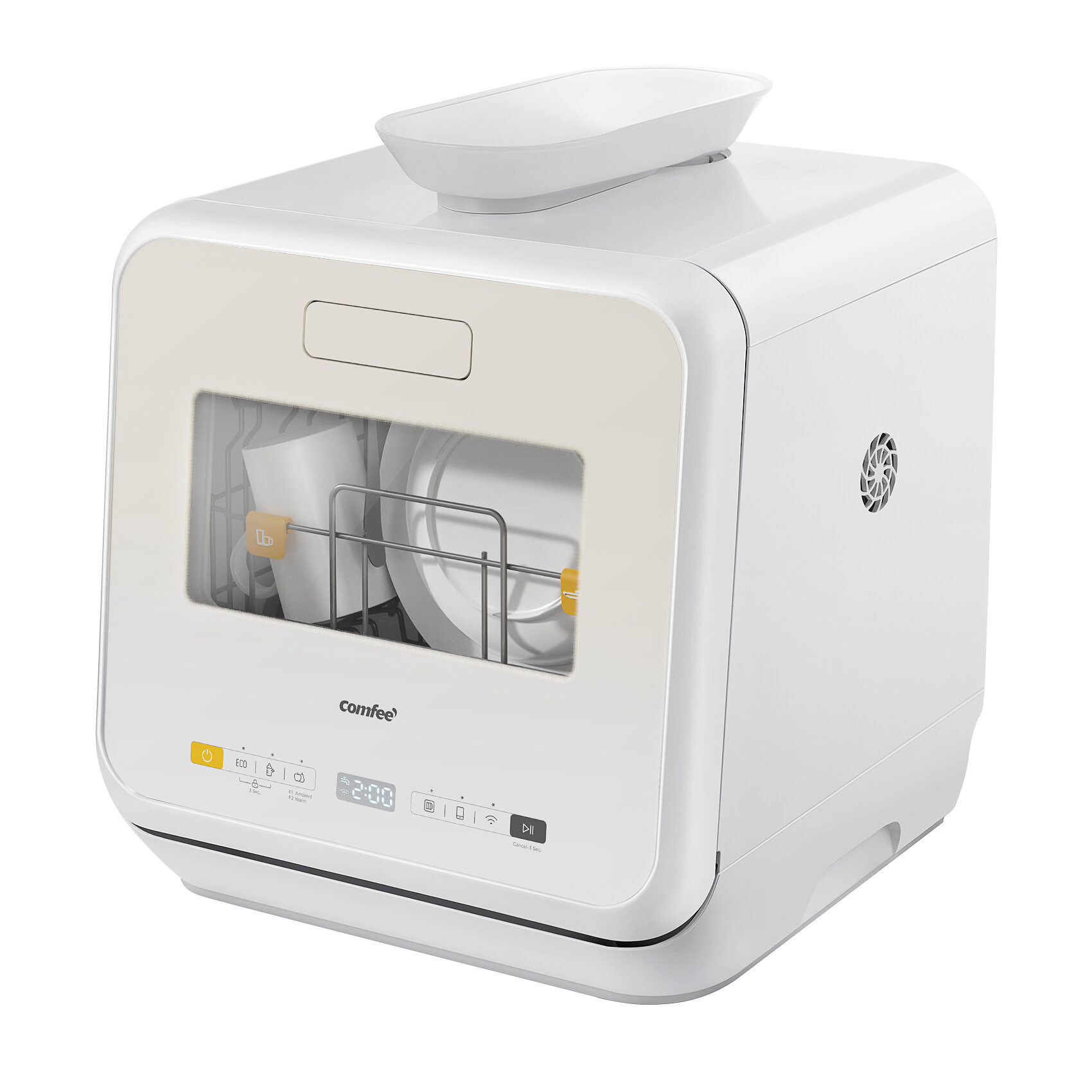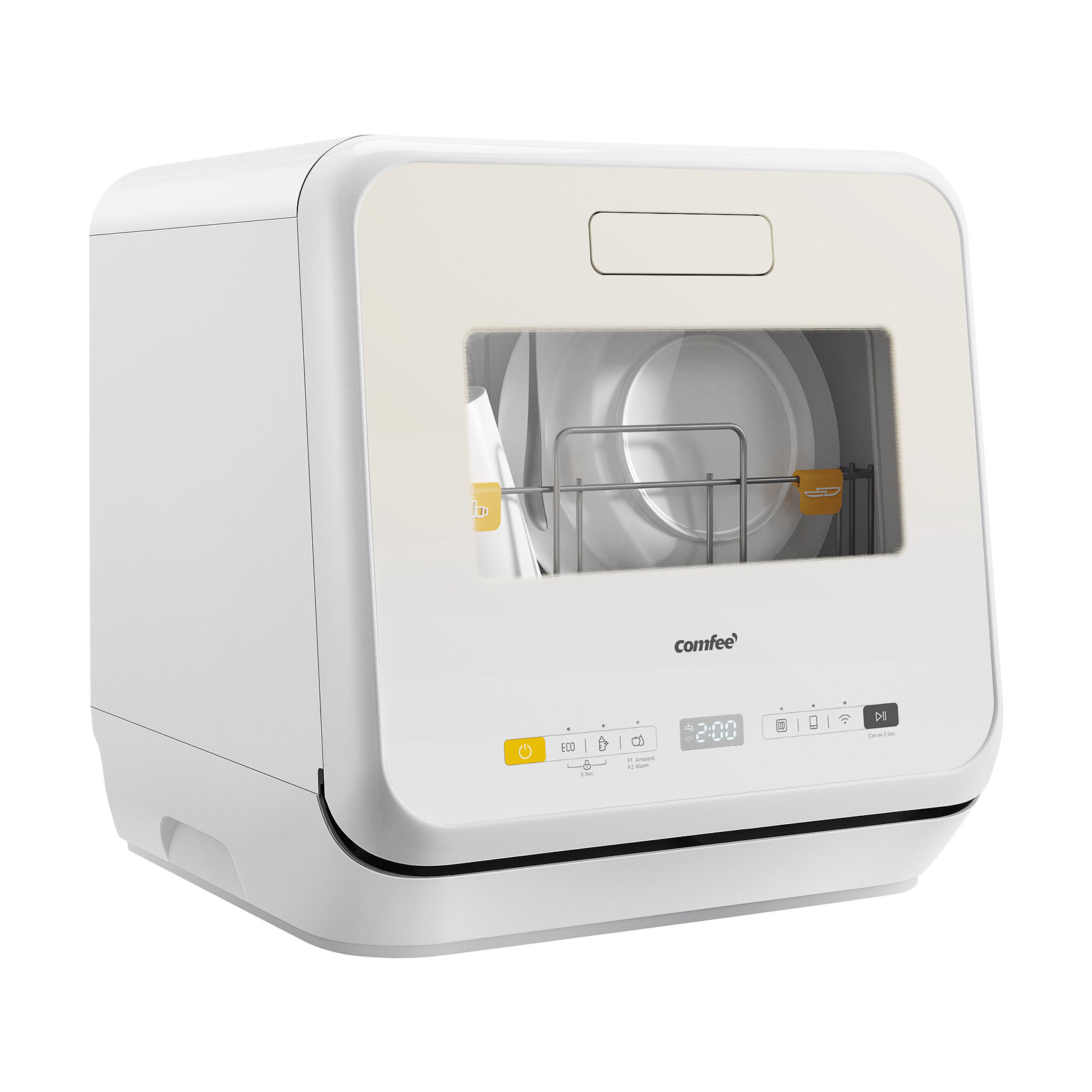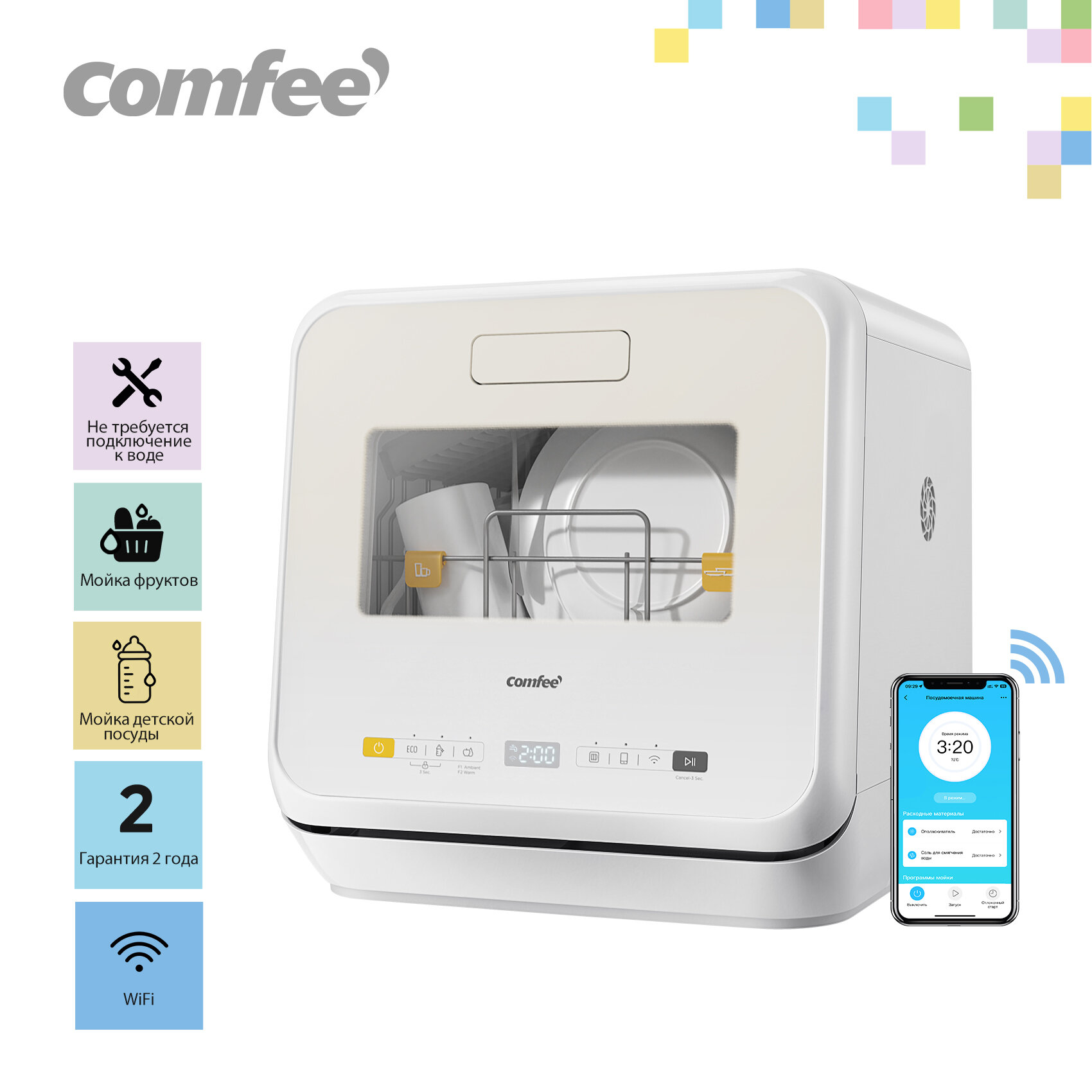 Компактная посудомоечная машина Comfee CDWC421BE-i, Wi-Fi управление, 5 программ, с/без подключения к водопроводу, режим детская посуда, мытье фруктов, сушка, белый/бежевый