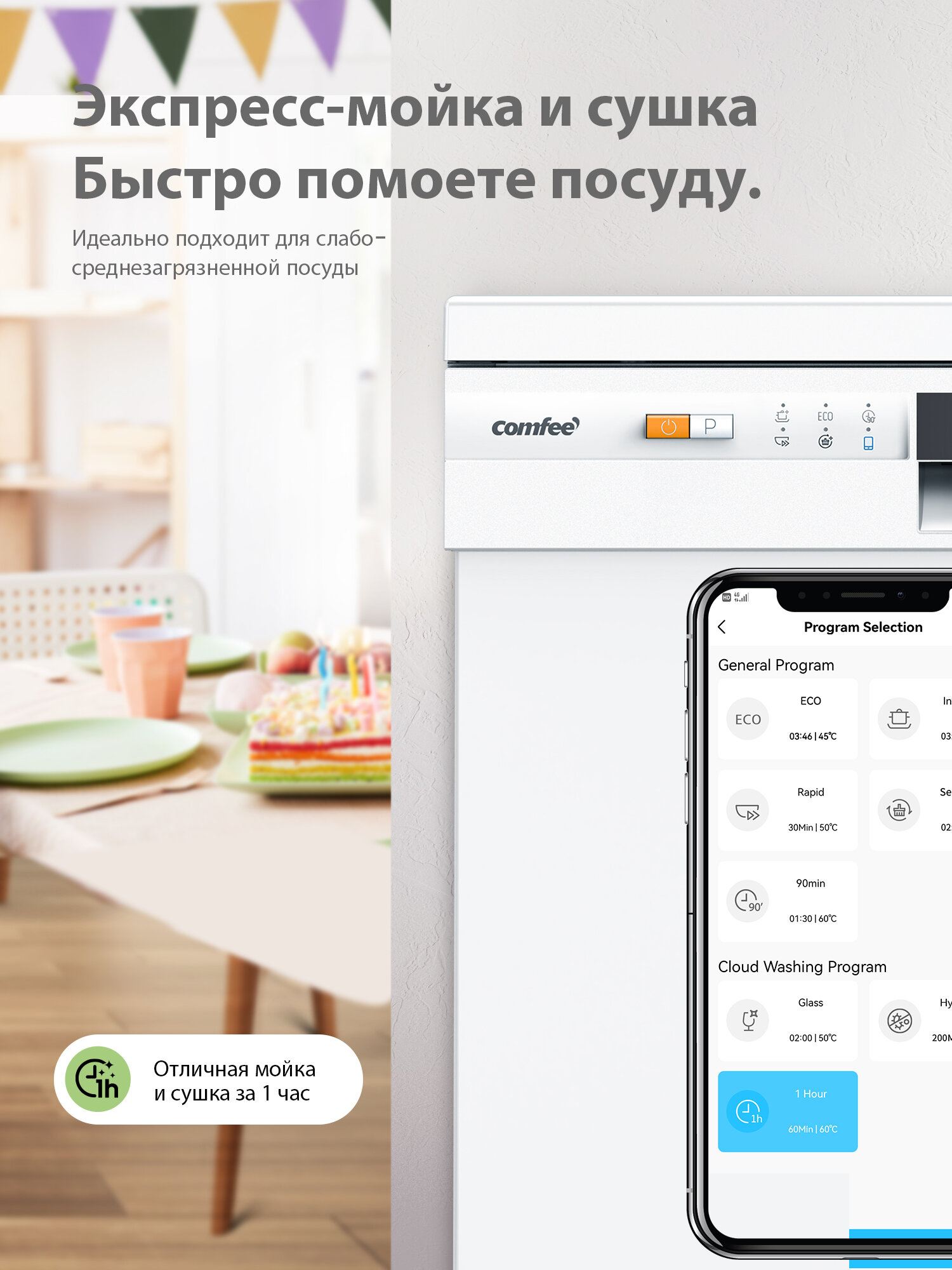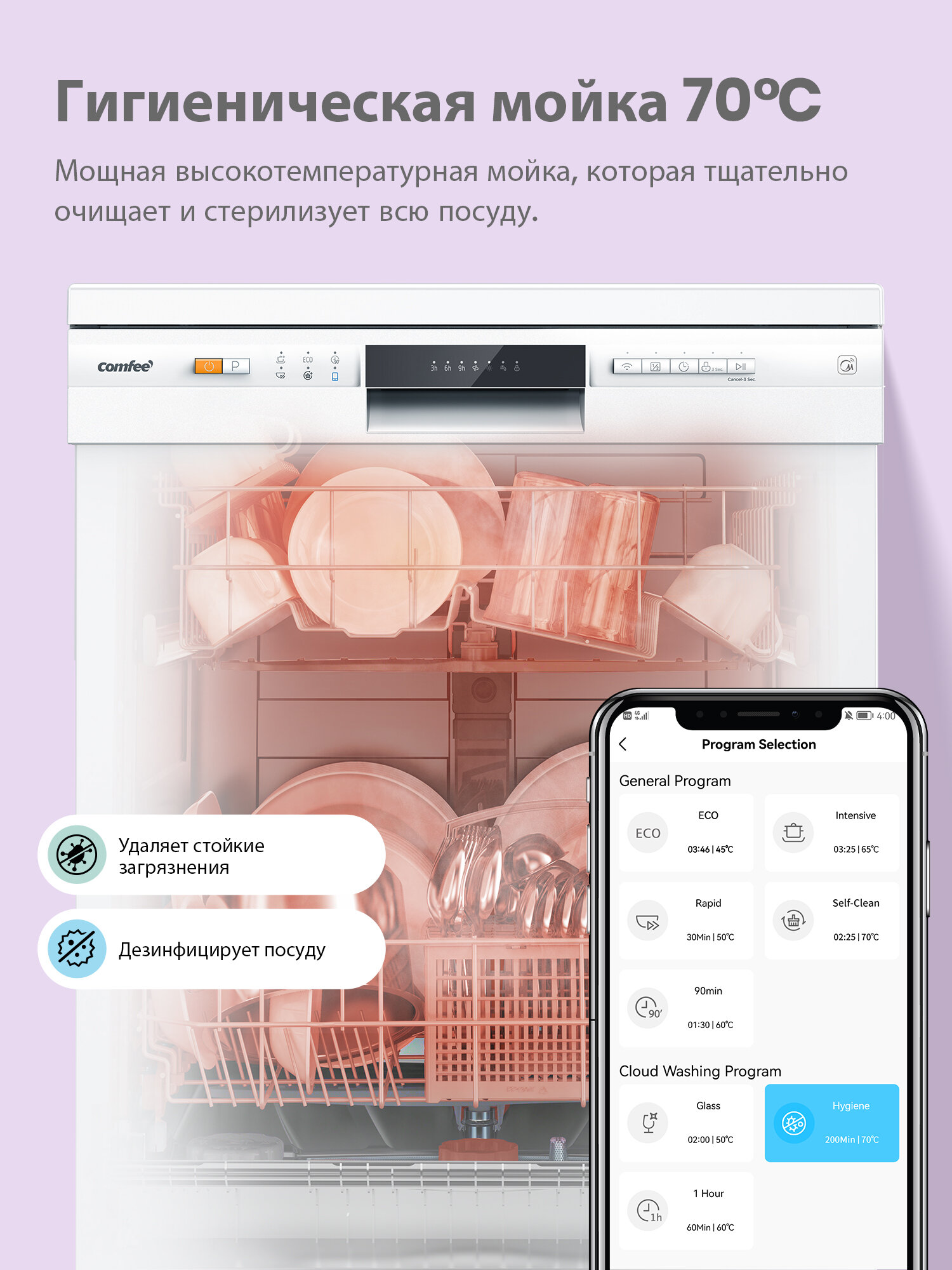 Отдельностоящая посудомоечная машина с Wi-Fi Comfee CDW602Wi интересное: