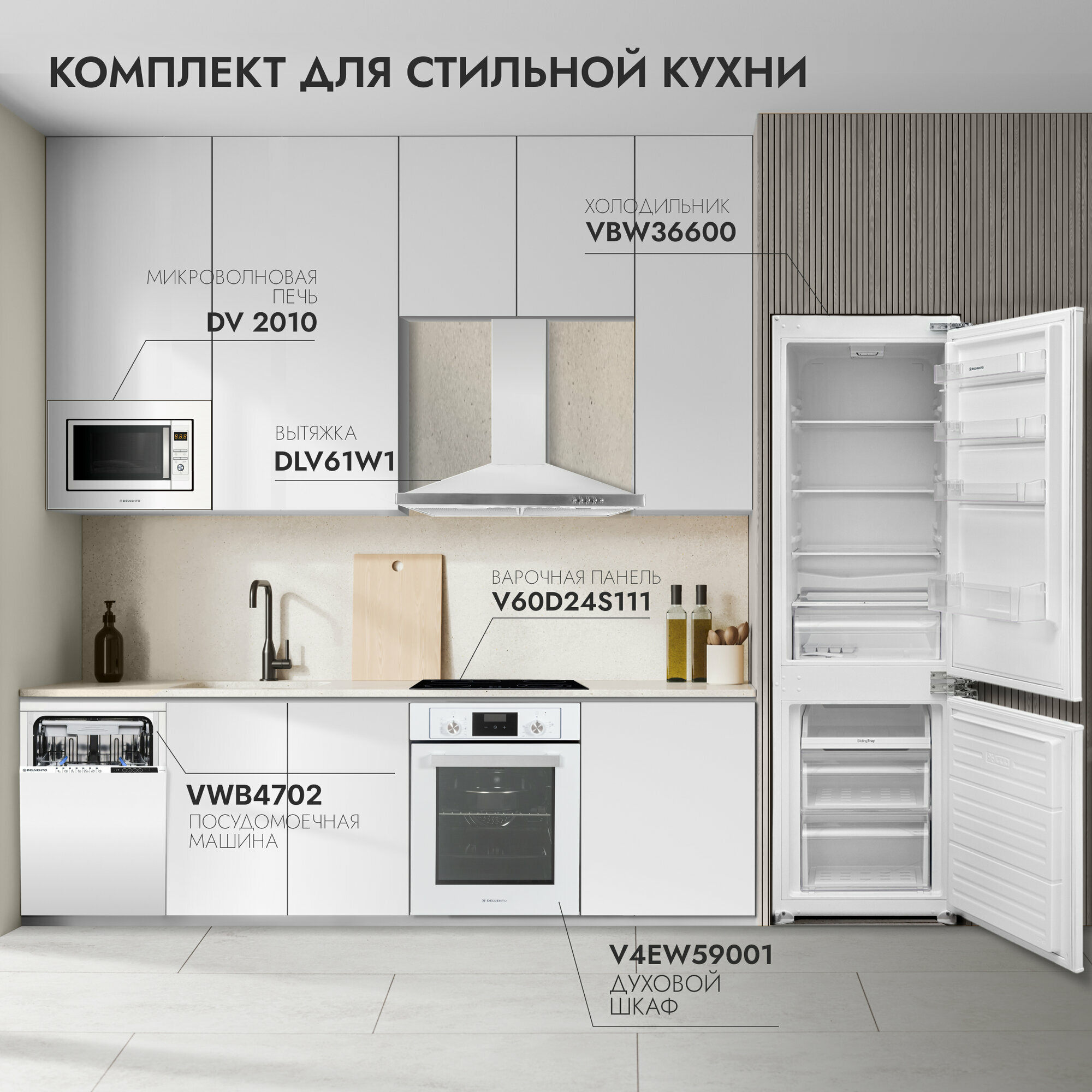 Посудомоечная машина встраиваемая 60 см DELVENTO VGB6600 / 6 программ / 14 комплектов / белый / 2 корзины загрузки / половинная загрузка / подсветка / отложенный старт / блокировка от детей / защита от протечек / 3 года гарантии
