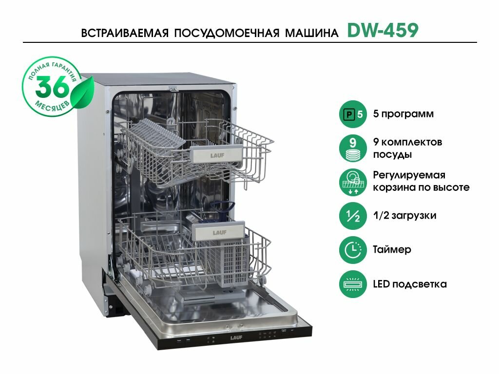 Встраиваемая посудомоечная машина LAUF DW-459 интересное: