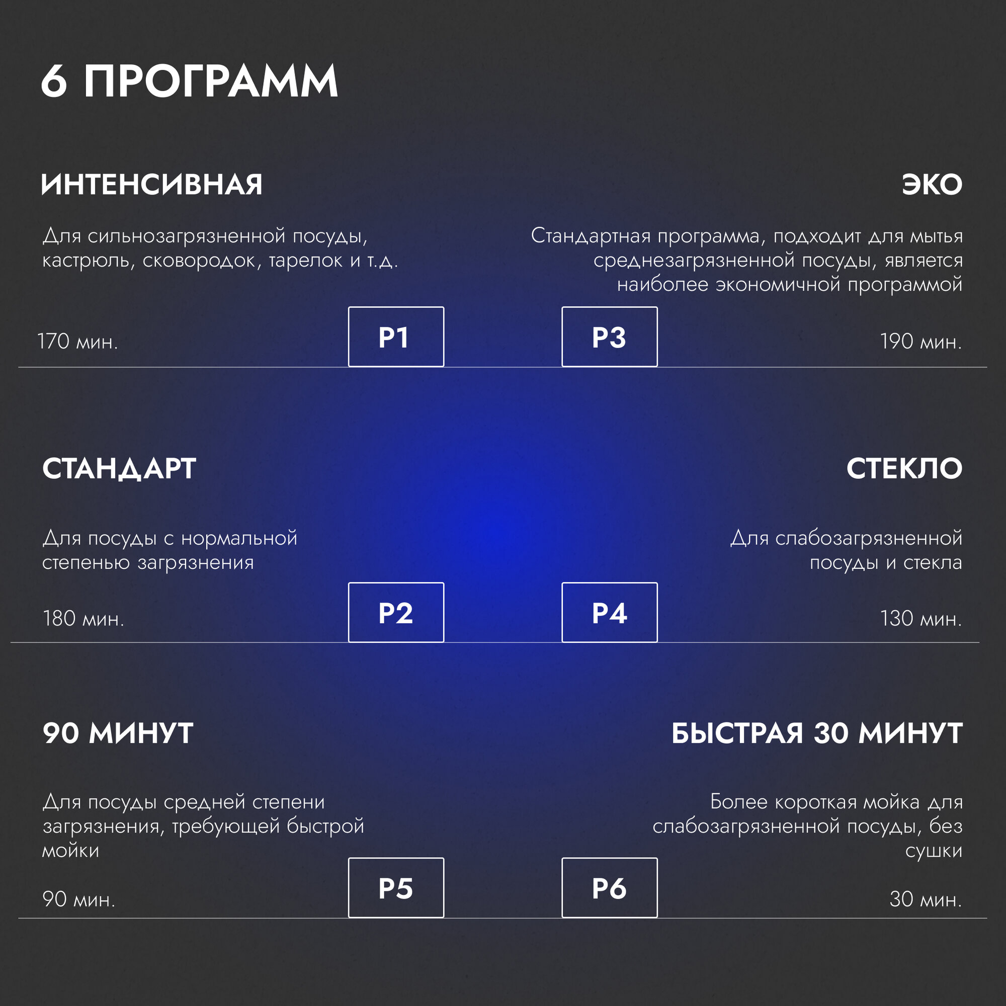 | Программы | быстрая / деликатная / интенсивная / экономичная |