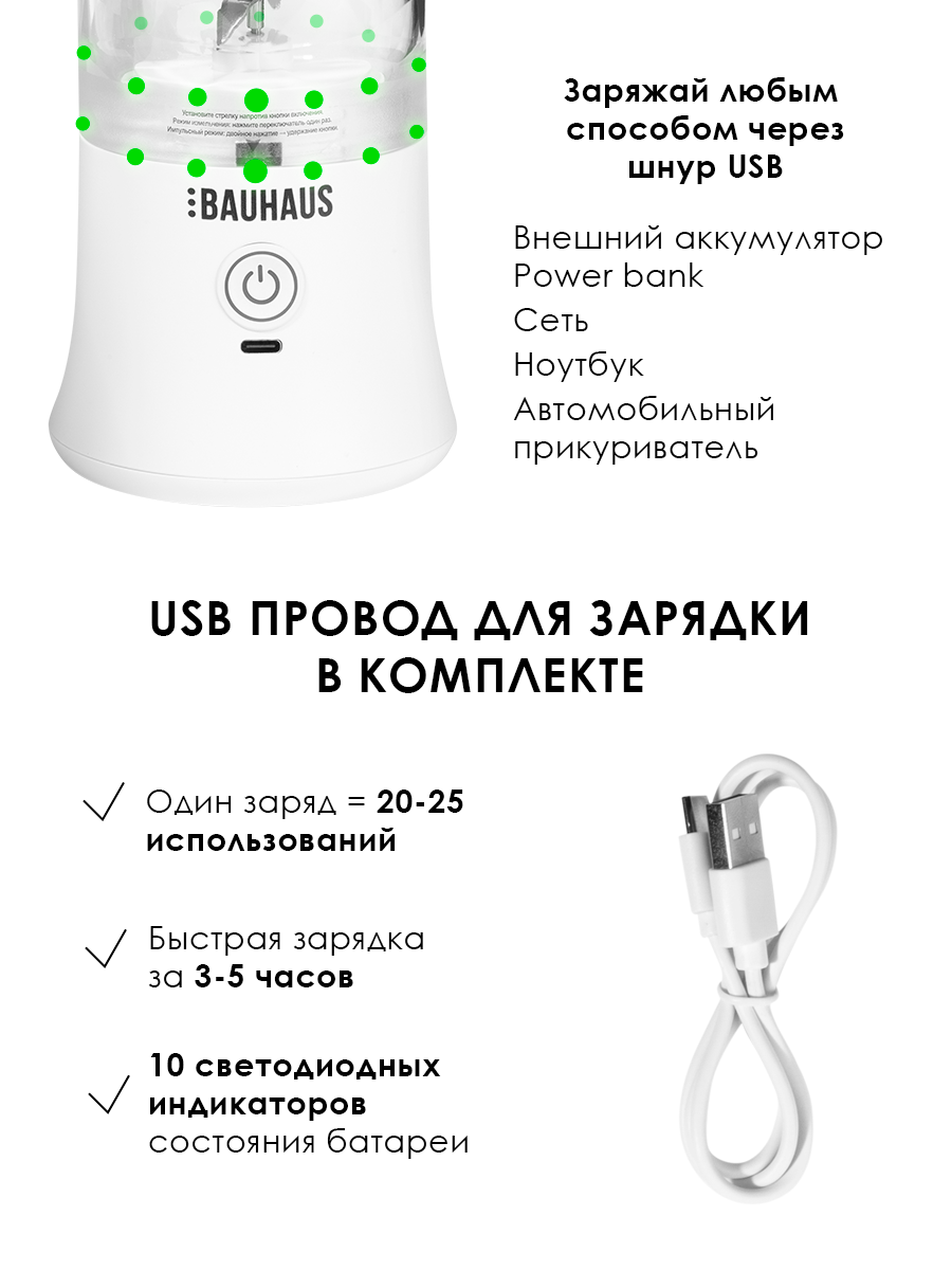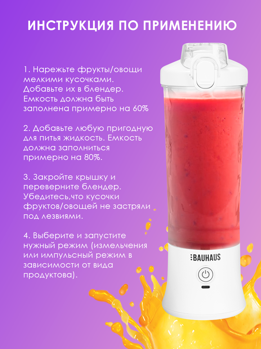 Портативный мини блендер BAUHAUS для смузи и коктейлей белый интересное: