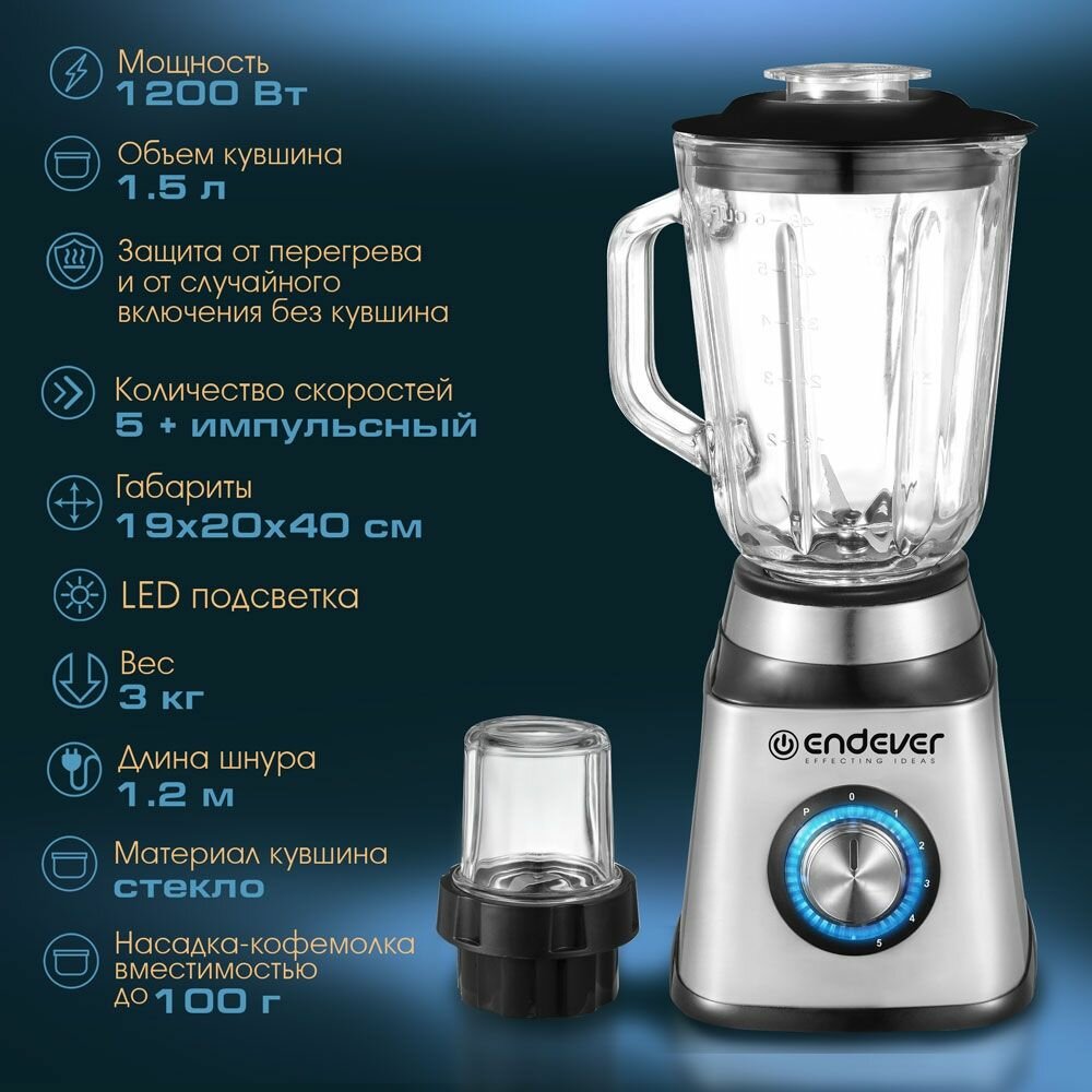 Купить Блендер стационарный с насадкой-кофемолкой ENDEVER SIGMA-200 / 1200Вт / импульсный режим