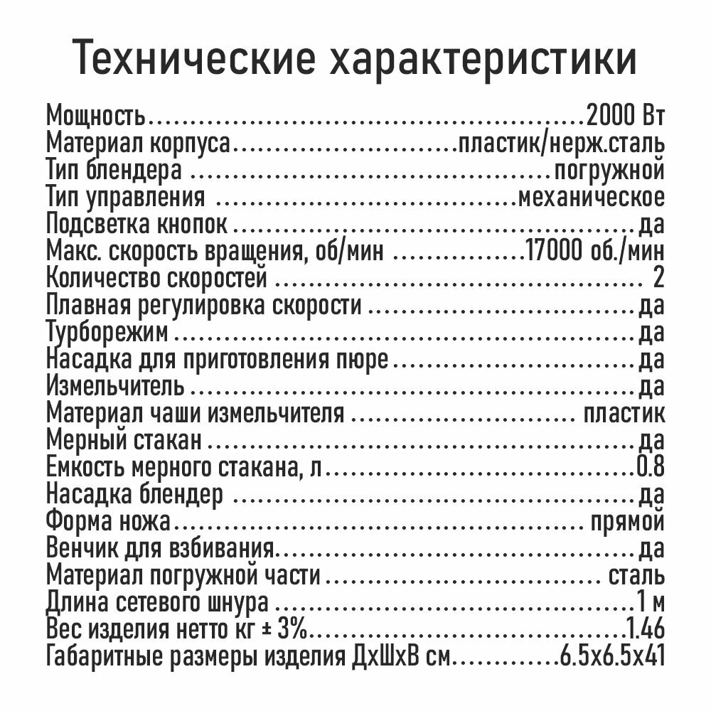 | Насадки | венчик для взбивания / измельчитель |