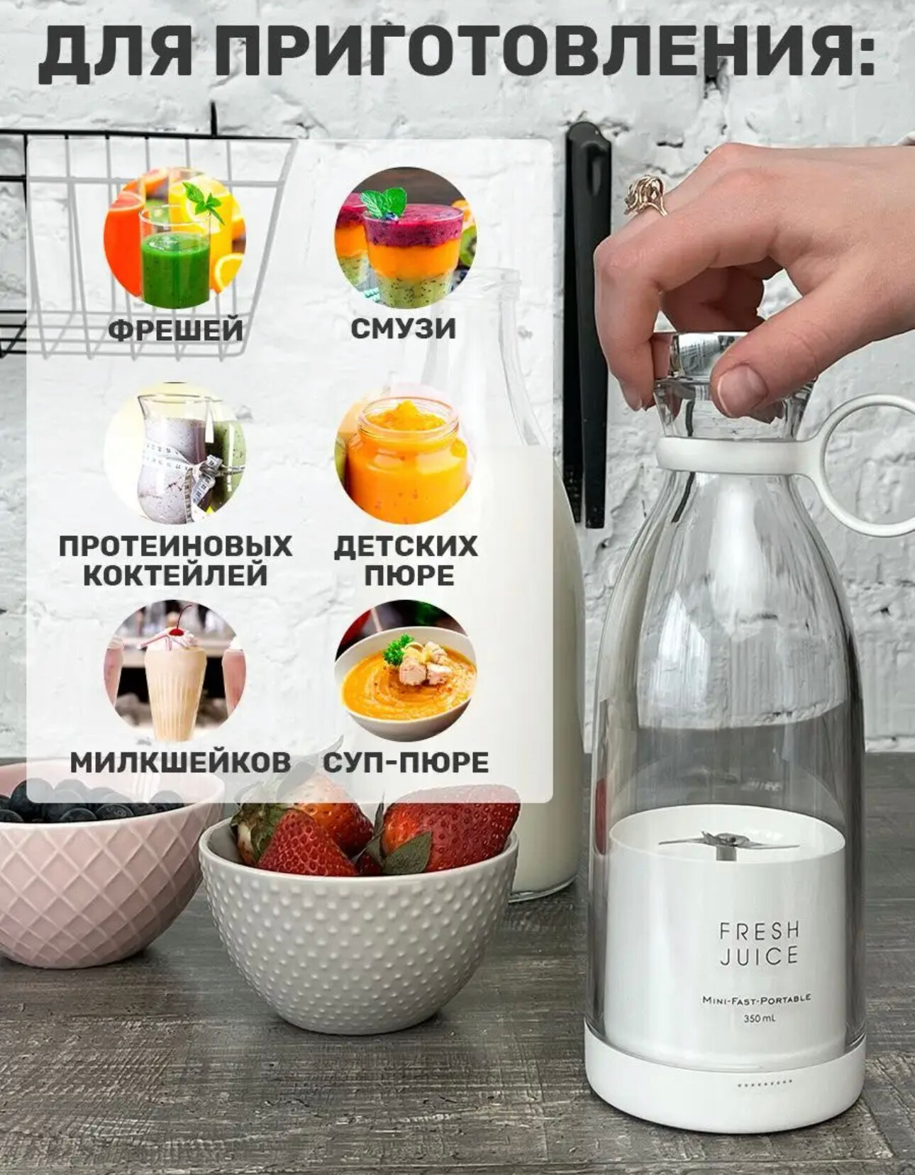 Портативный блендер для смузи и бутылка шейкер для коктейлей FRESH JUICE (оригинал) интересное: