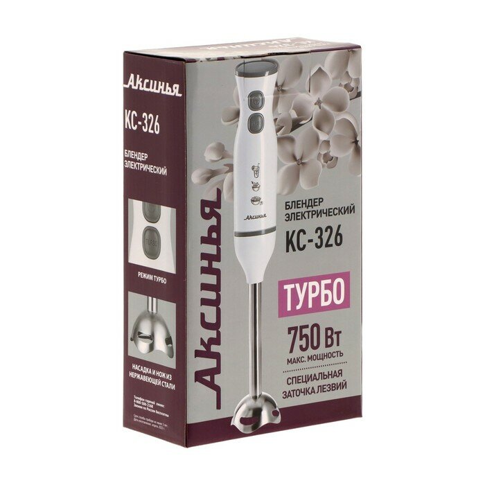 Купить Аксинья Блендер "аксинья" КС-326, погружной, 750 Вт, 2 скорости, режим "турбо", бело-серый