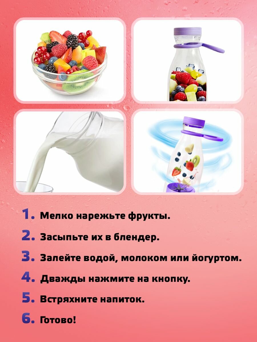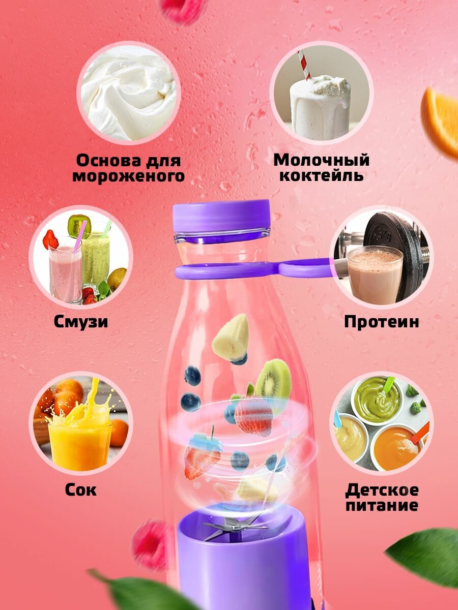 Портативный блендер для смузи и коктейлей беспроводной Classmark на аккумуляторе, мини измельчитель электрический, фиолетовый интересное: