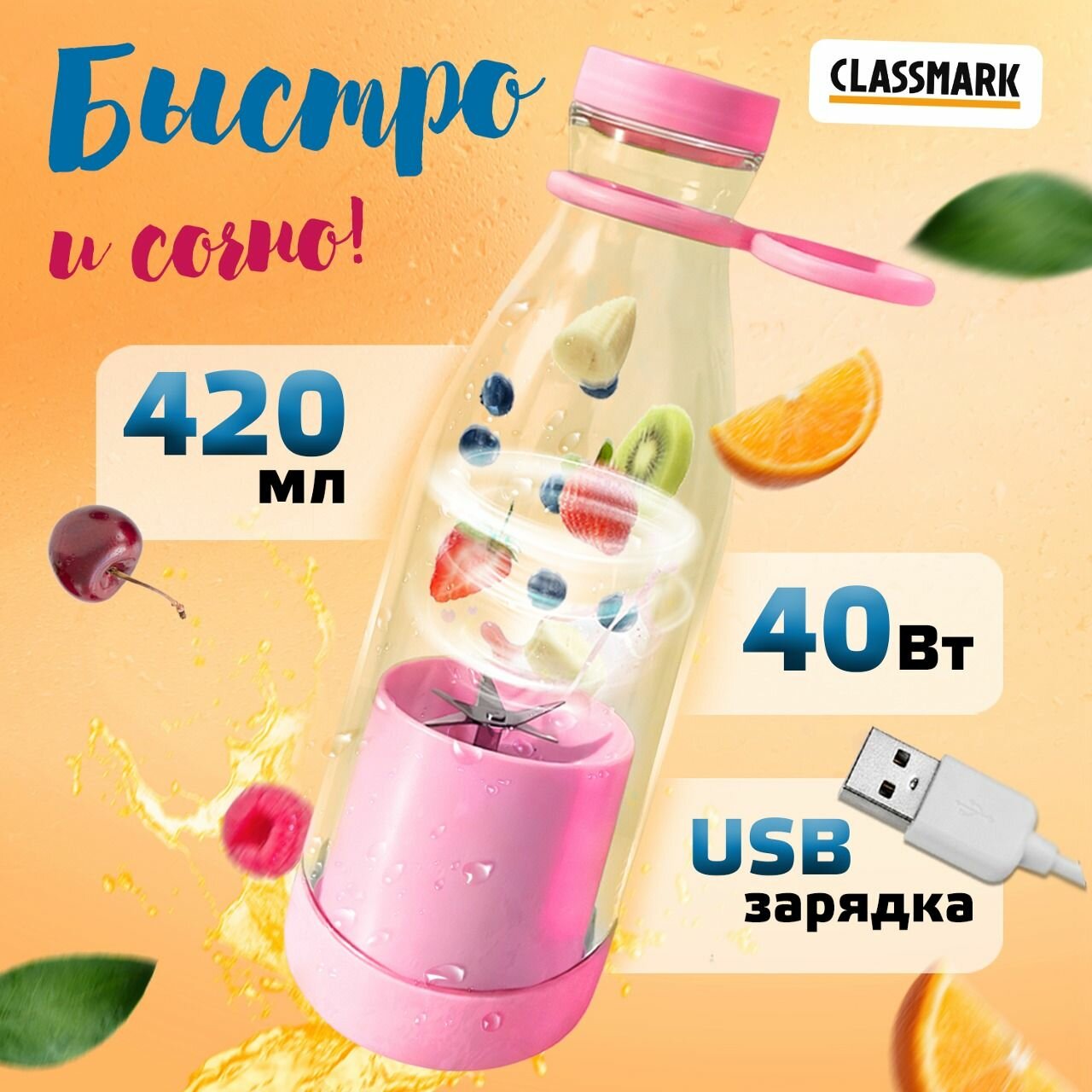 Купить Портативный блендер для смузи и коктейлей беспроводной Classmark на аккумуляторе, мини измельчитель электрический, розовый