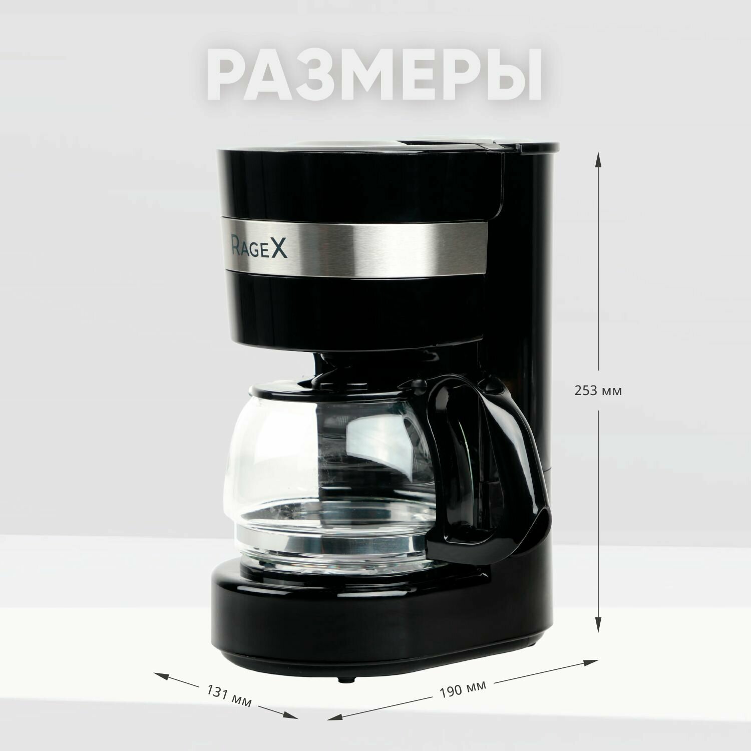 Капельная кофеварка RageX R401-000, подогрев кофе, 0.65 л, многоразовый фильтр, 600 Вт, черная интересное: