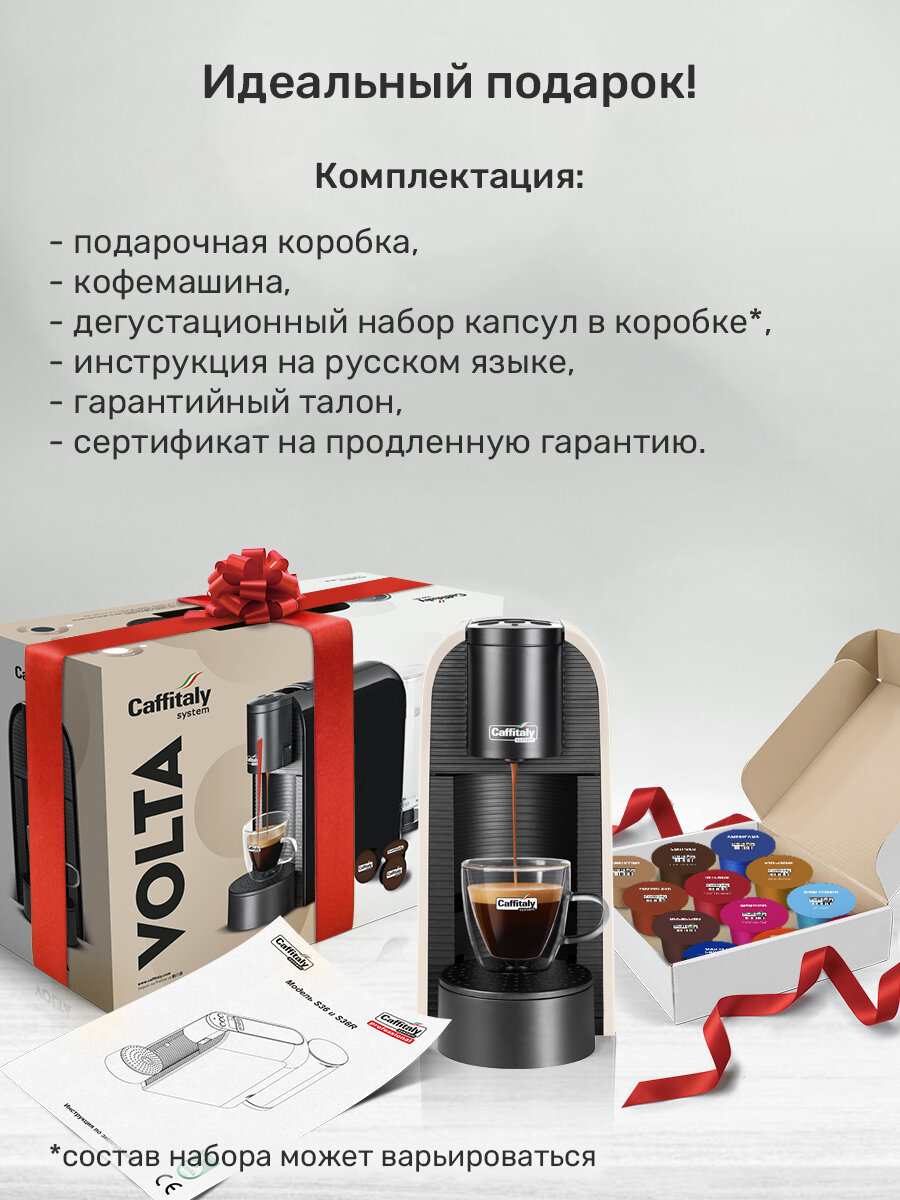 Кофемашина капсульная Caffitaly Volta S36 черная и 30 капсул кофе ассорти