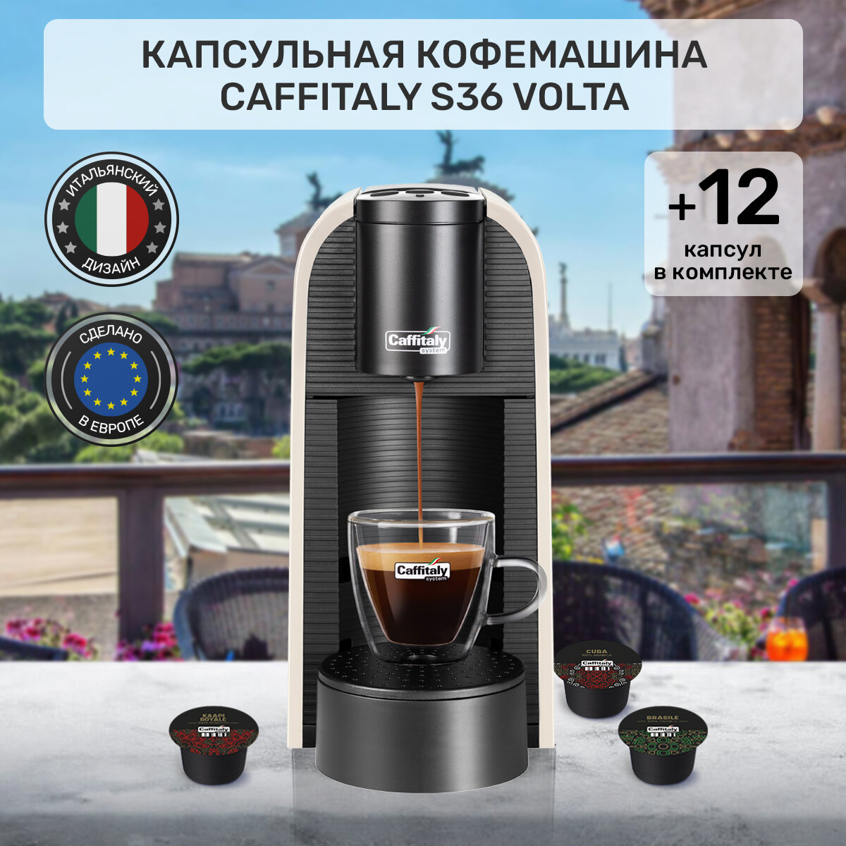Кофемашина капсульная Caffitaly Volta S36, белая и 12 капсул кофе ассорти интересное: