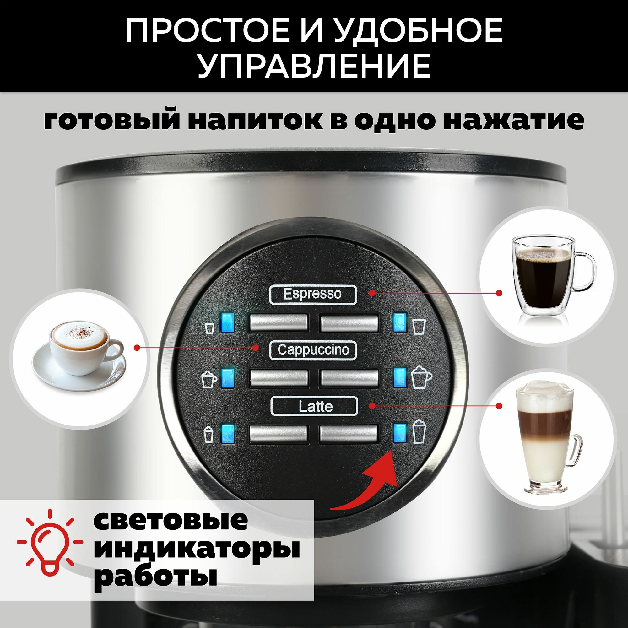 Купить GFGRIL Кофеварка с автоматическим капучинатором 3 в 1 GFC-A300, Эспрессо-Капучино-Латте