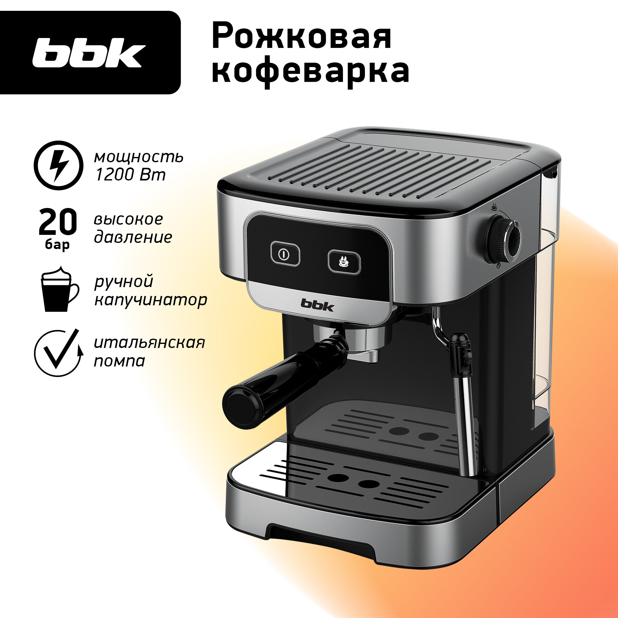 Ниже Вы можете прочитать отзывы на Кофеварка рожковая BBK BCM1500 черный/нержавеющая сталь, мощность 1200 Вт, давление 20 бар, емкость резервуара 1.8 л, итальянская помпа, капучинатор, ознакомится с подробными характеристиками, посмотреть интересные обзоры и фотографии на Кофеварка рожковая BBK BCM1500 черный/нержавеющая сталь, мощность 1200 Вт, давление 20 бар, емкость резервуара 1.8 л, итальянская помпа, капучинатор.