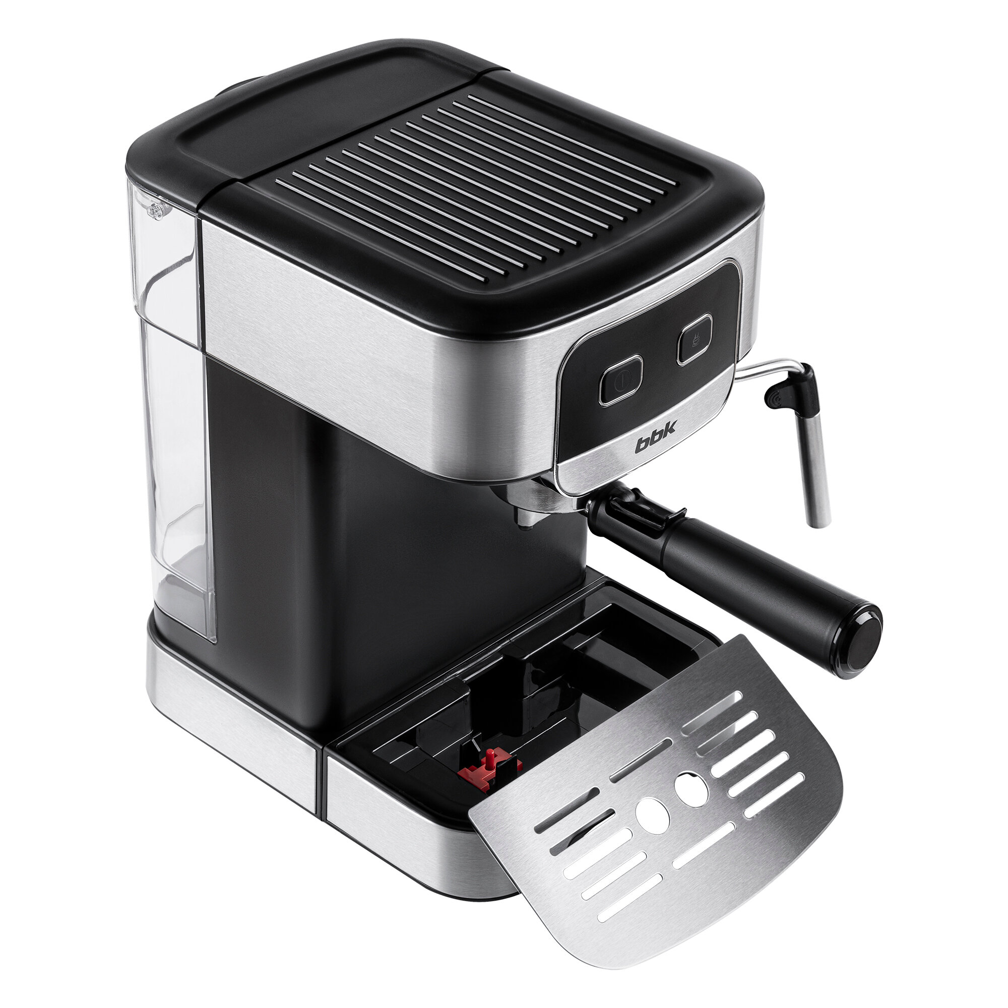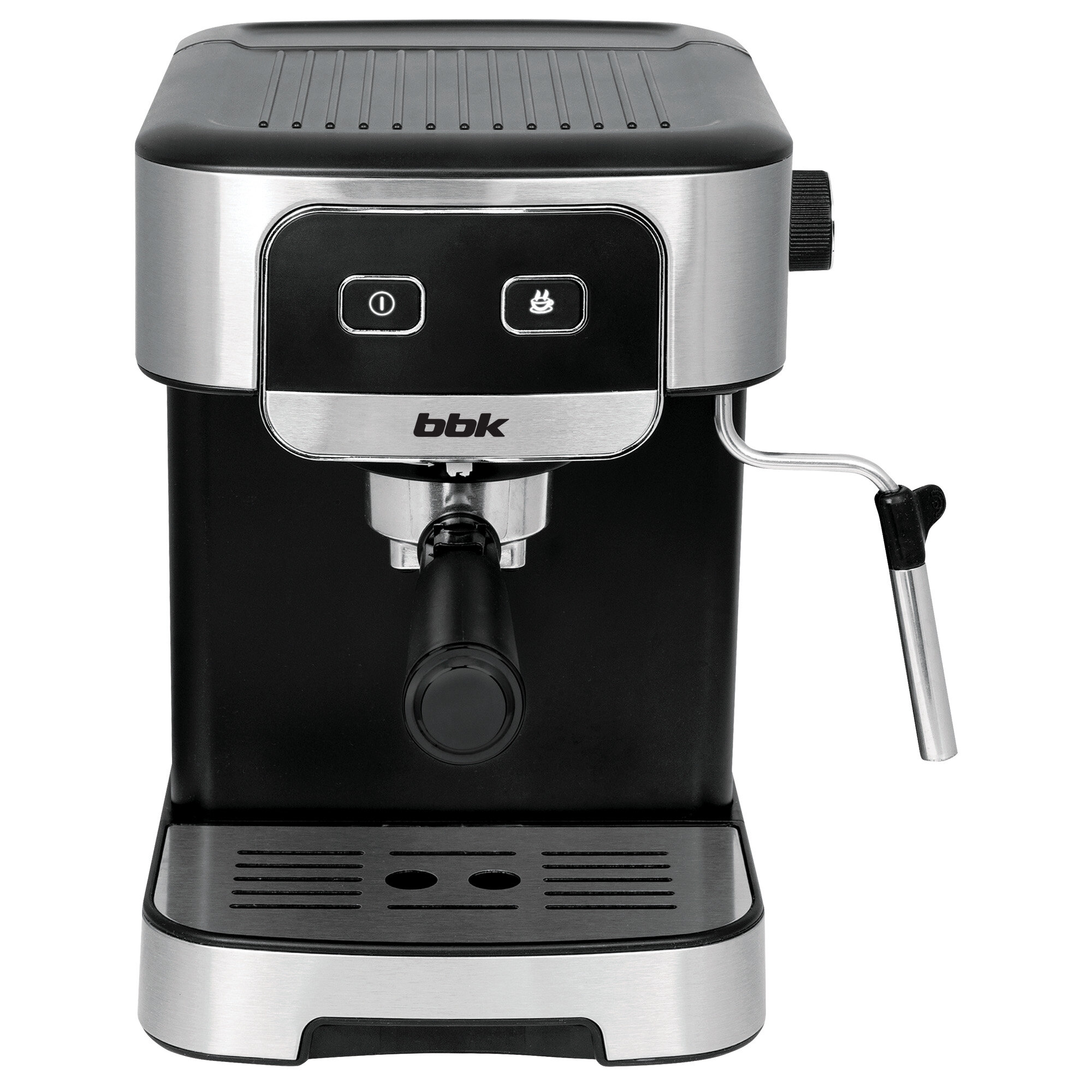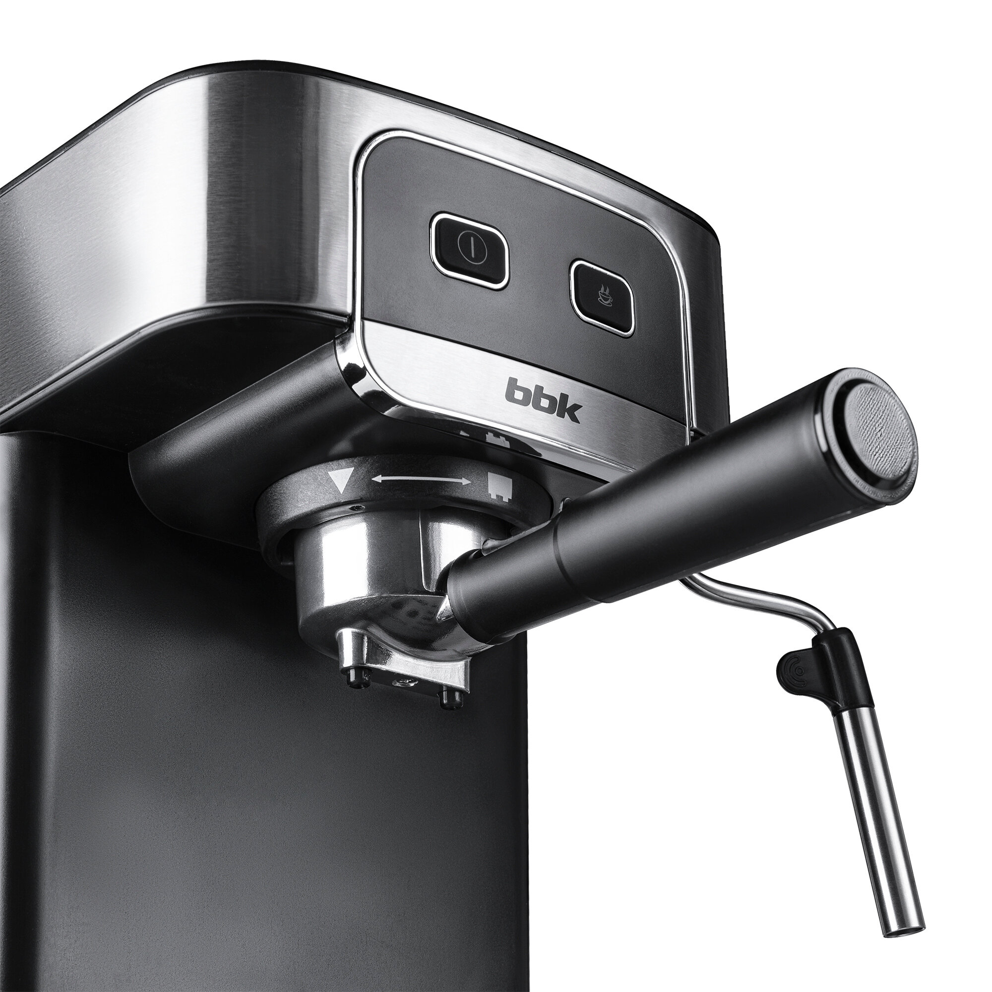 Купить Кофеварка рожковая BBK BCM1500 черный/нержавеющая сталь, мощность 1200 Вт, давление 20 бар, емкость резервуара 1.8 л, итальянская помпа, капучинатор