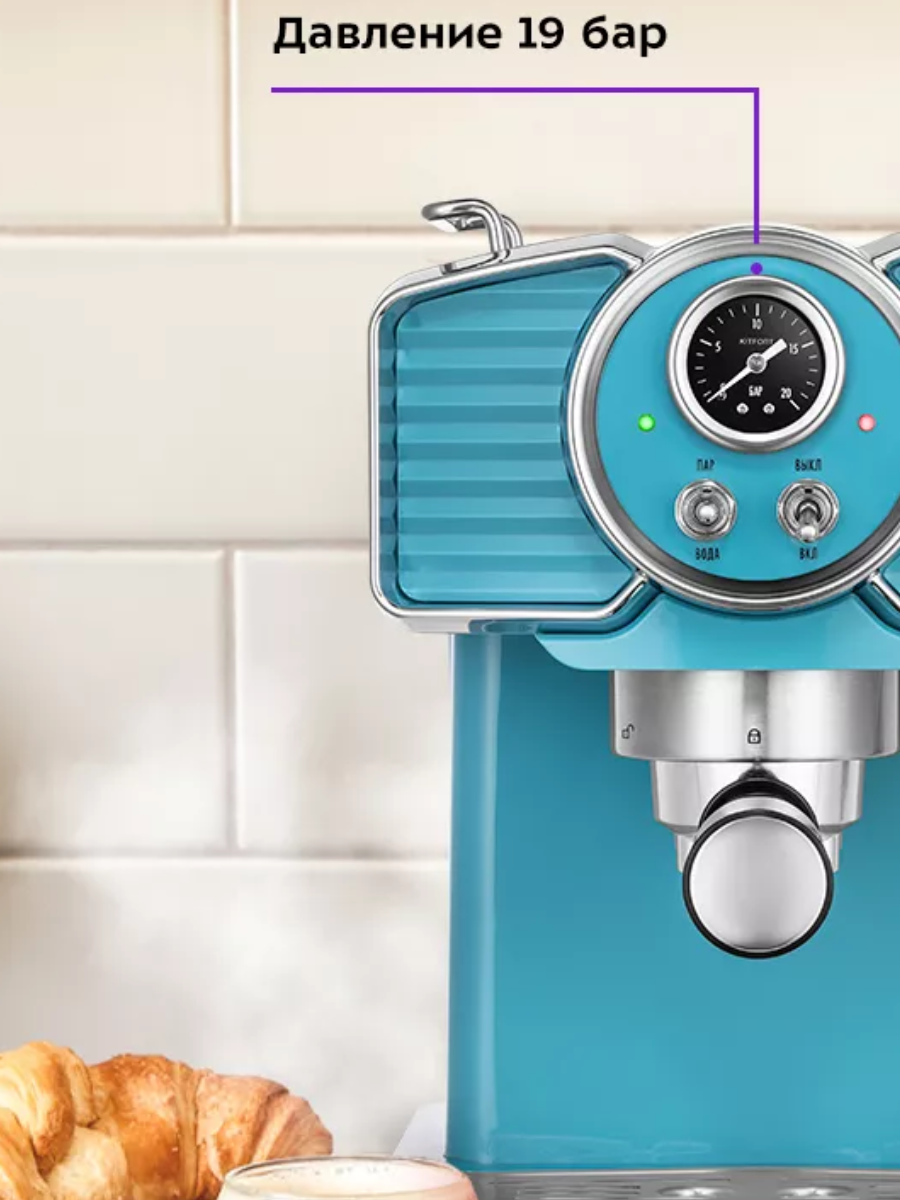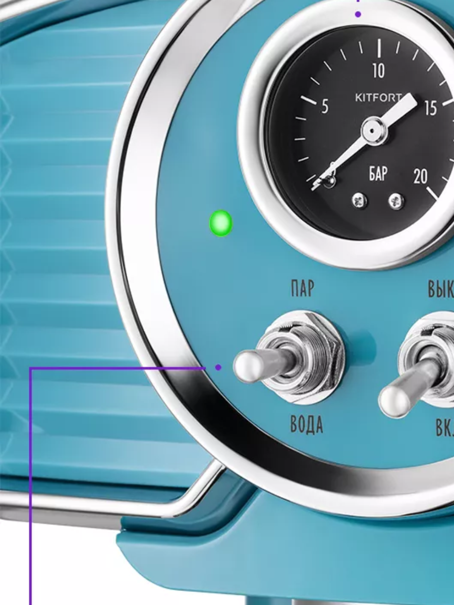 Кофеварка KitFort КТ-7125-2, рожковая, бирюзовый
