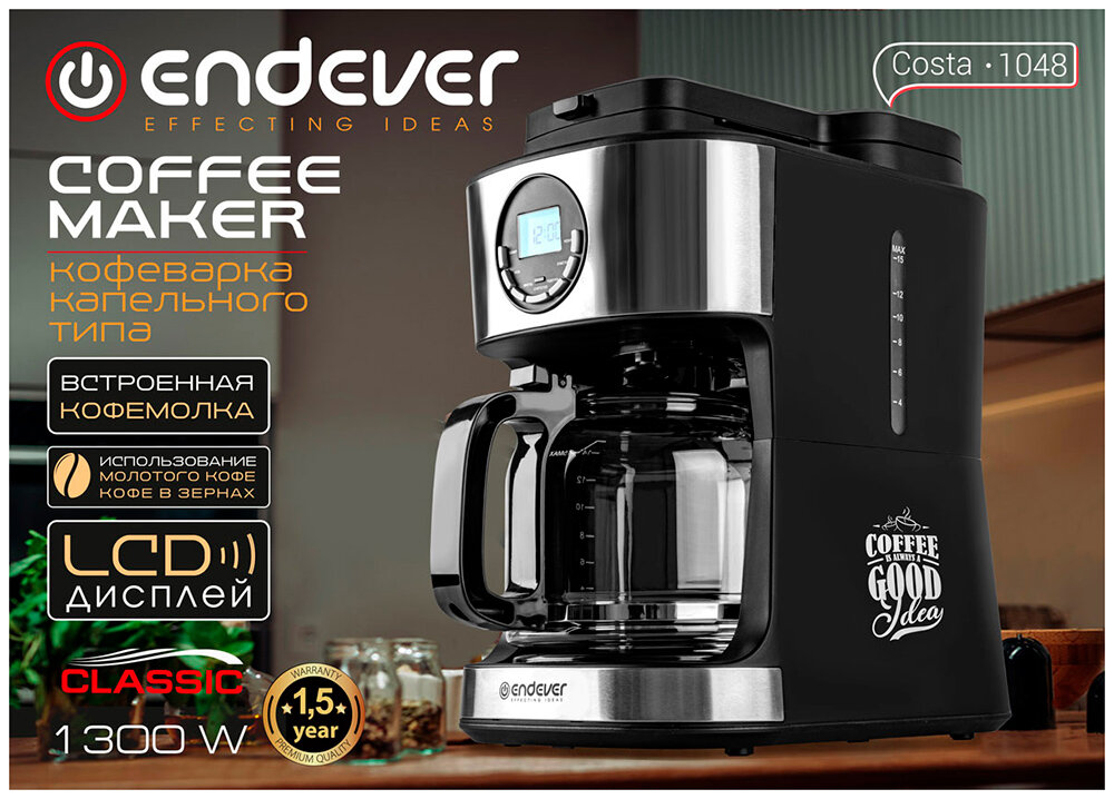 Ниже Вы можете прочитать отзывы на Кофеварка капельная электрическая ENDEVER COSTA-1048, ознакомится с подробными характеристиками, посмотреть интересные обзоры и фотографии на Кофеварка капельная электрическая ENDEVER COSTA-1048.
