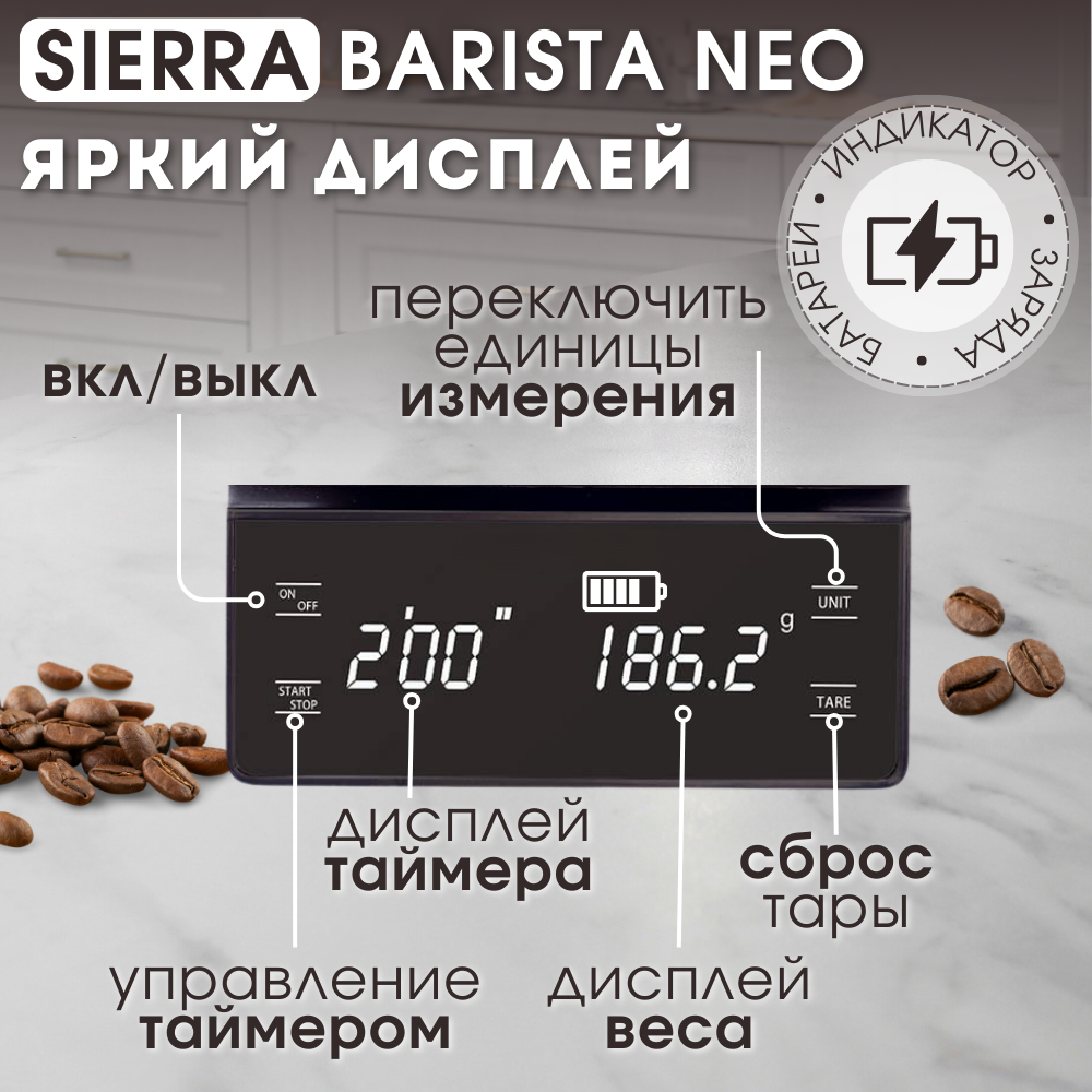 Весы для кофе с таймером, кухонные весы SIERRA BARISTA NEO интересное: