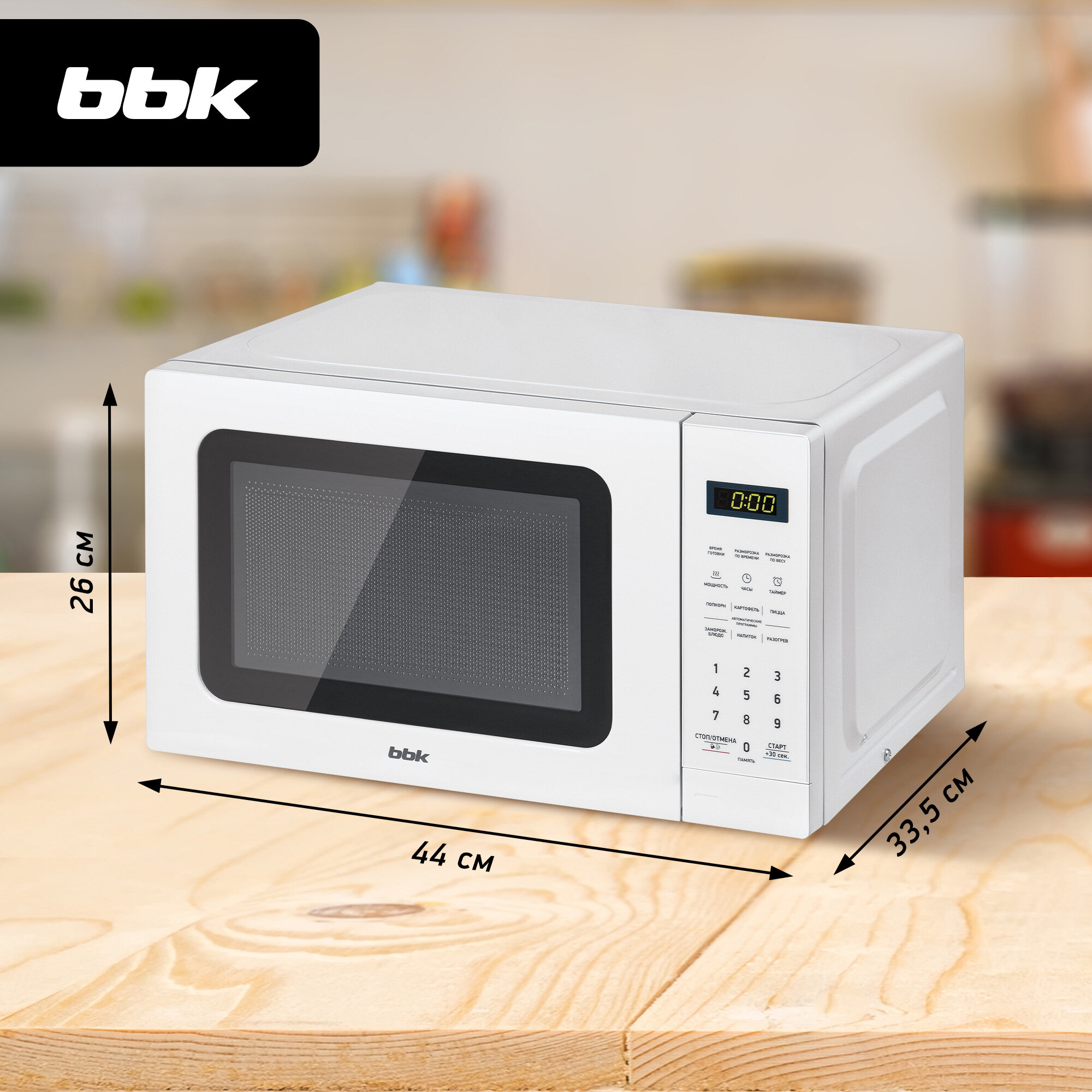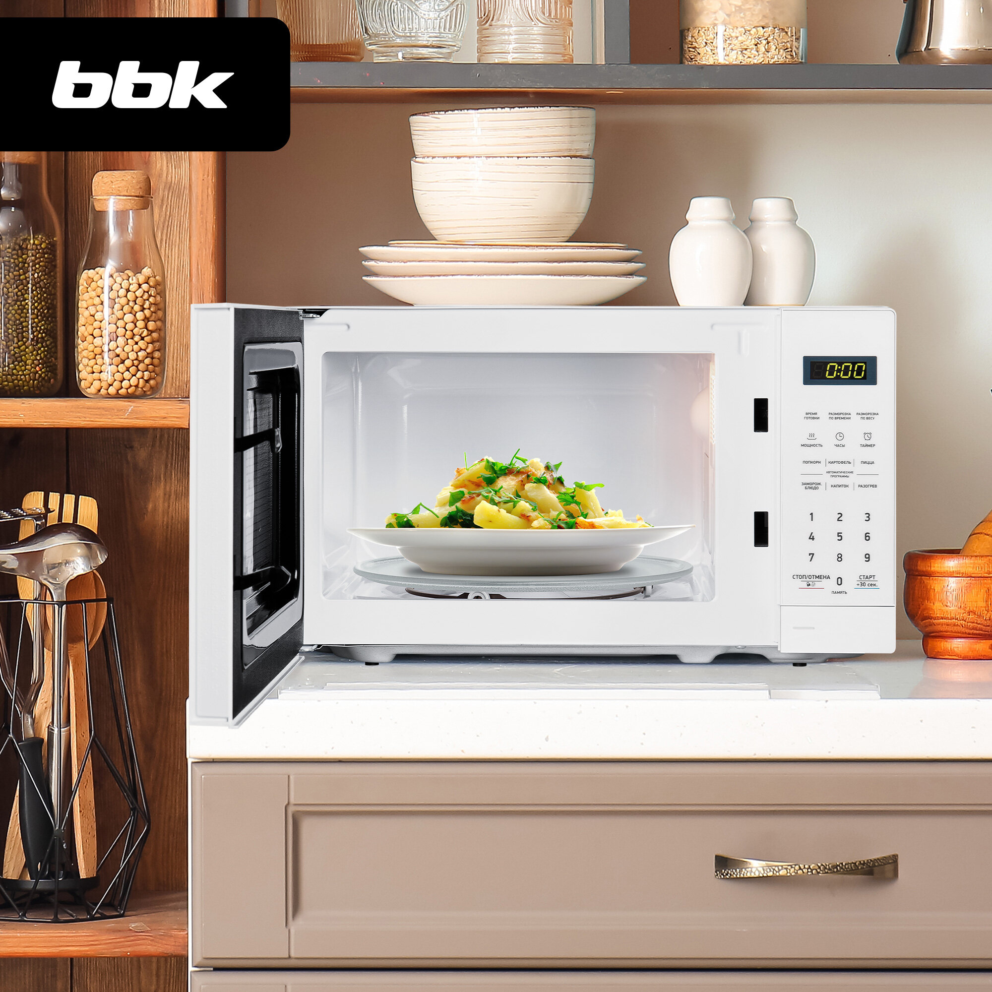 Микроволновая печь BBK 20MWS-767S/W белый, объем 20 л, мощность 700 Вт, автоменю, блокировка панели управления интересное: