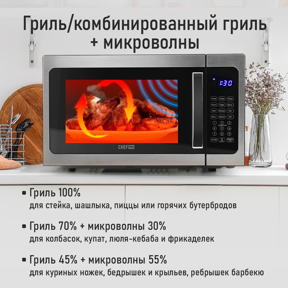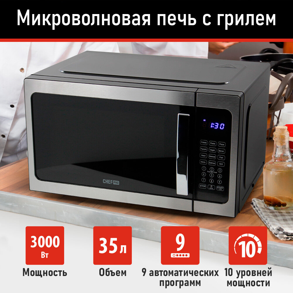 CHEF PRO CF-MW1951A черный/сталь микроволновая печь интересное: