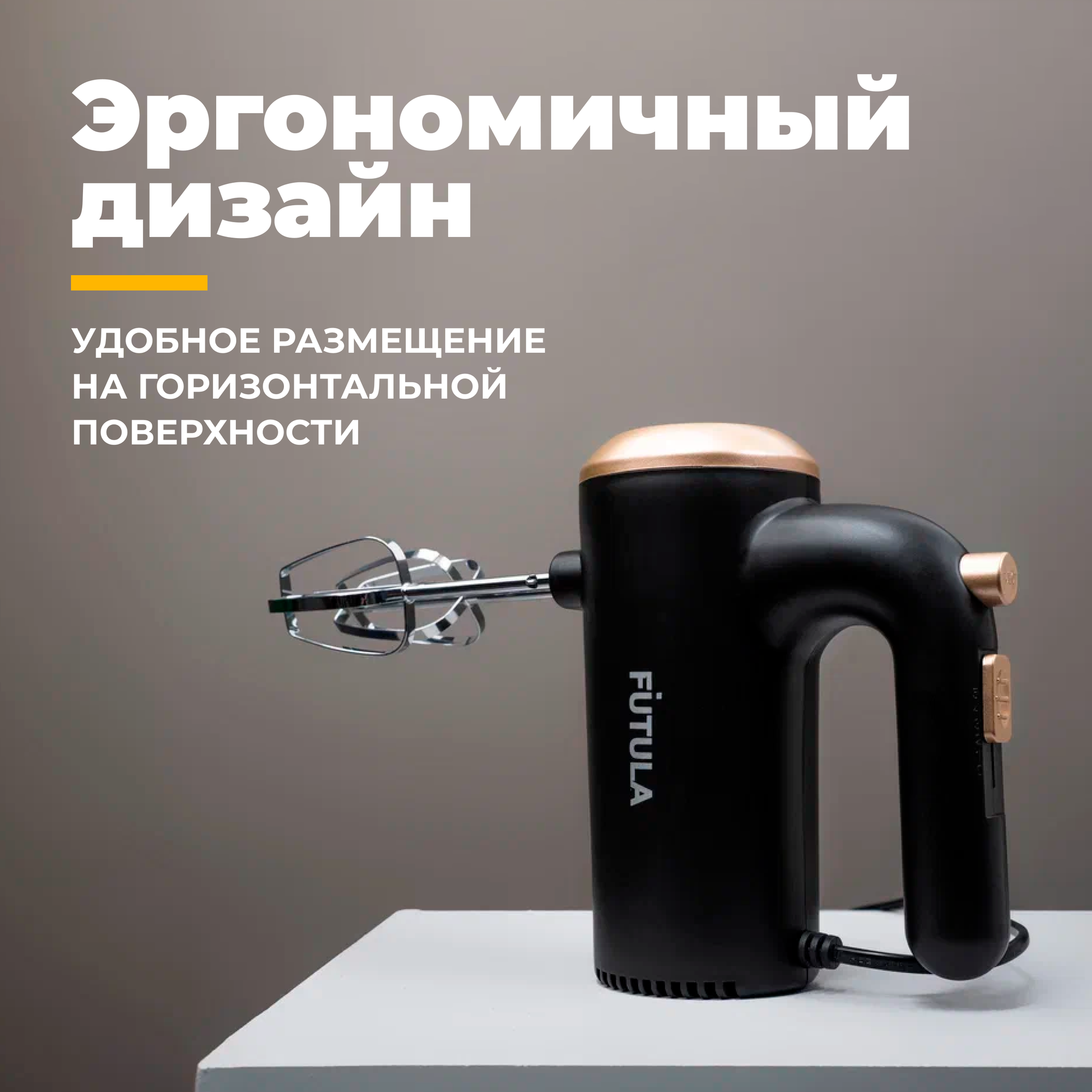 Миксер кухонный Futula HM4 черный, 2 насадки 800 Вт