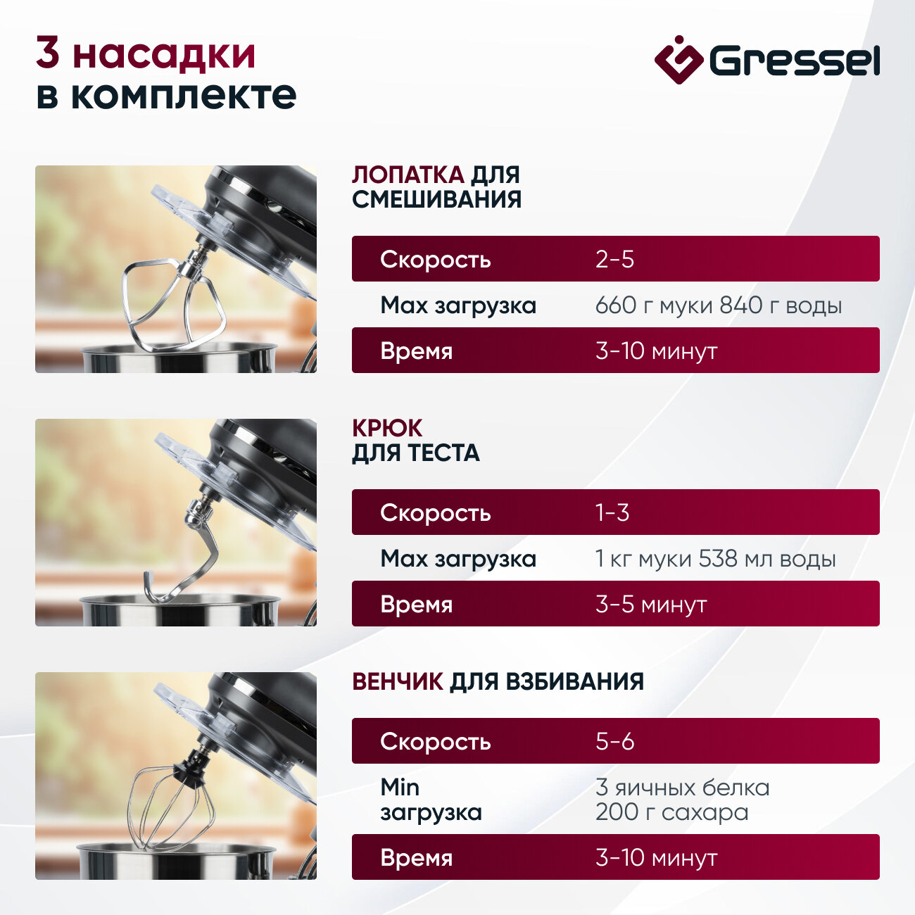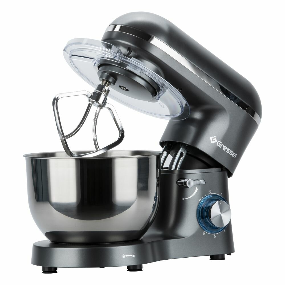 Планетарный миксер Gressel GRM-3002 с чашей, 1400 Вт, 6 скоростей, серый интересное: