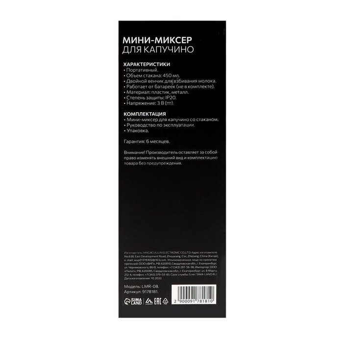 Капучинатор погружной со стаканом Luazon LMR-08, 450мл, от батареек 2АА не в компл. интересное: