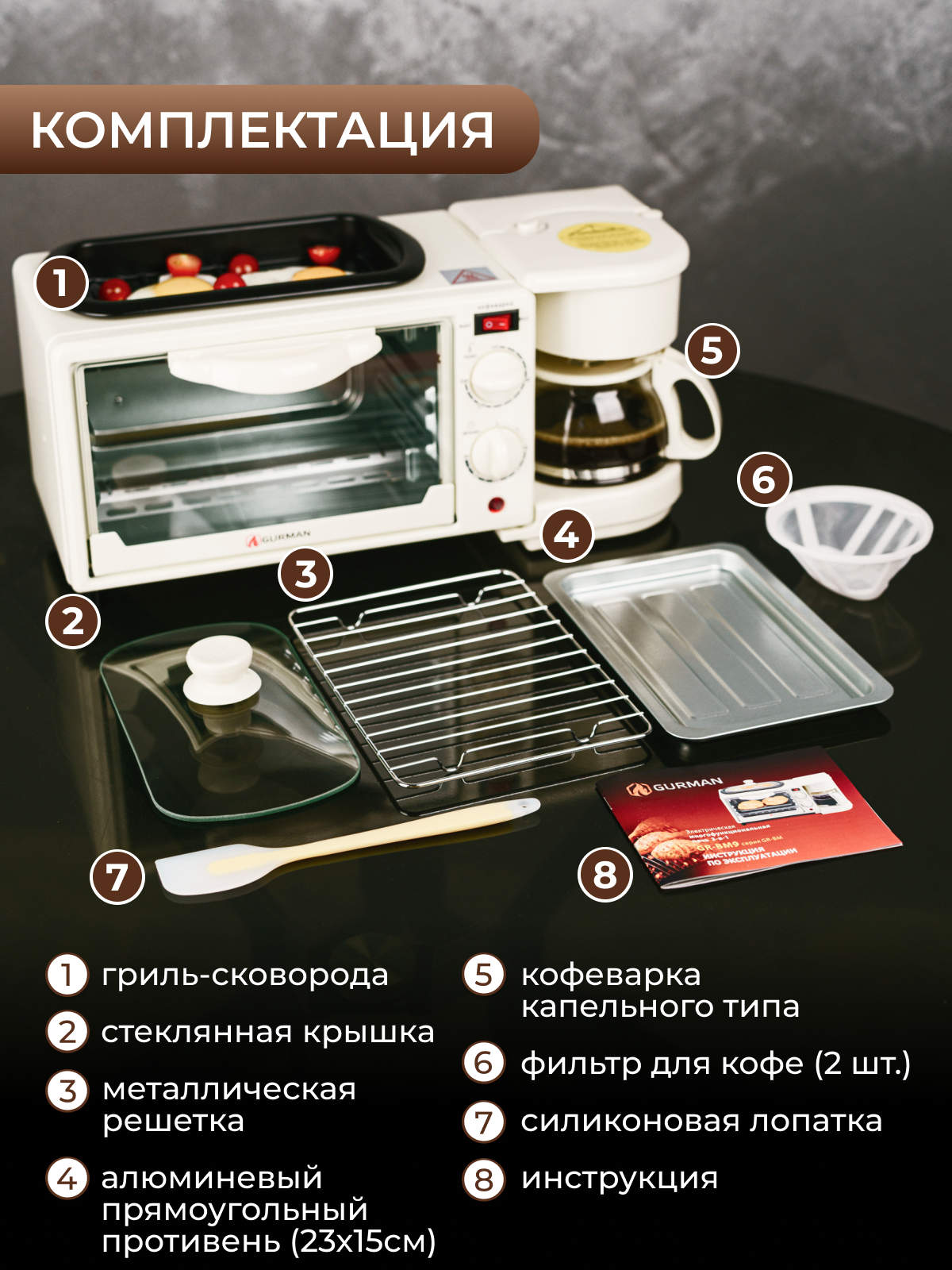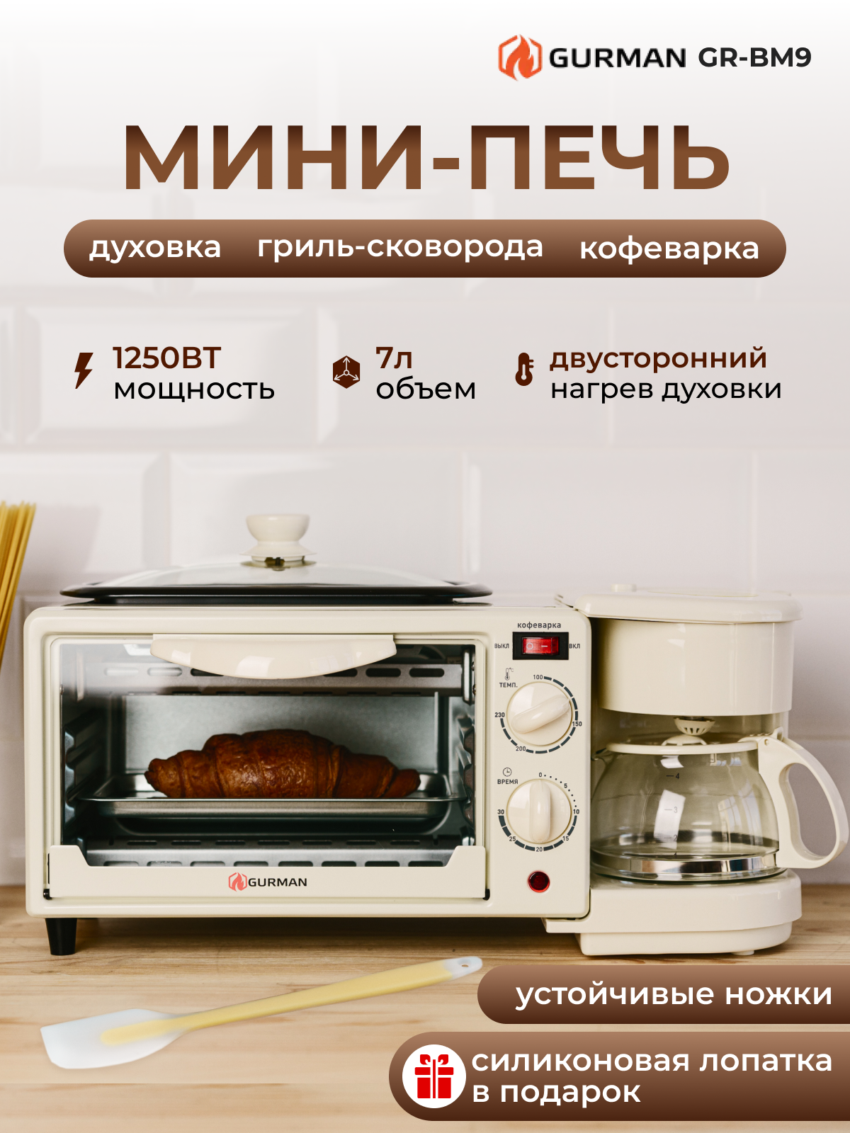 Электрическая многофункциональная печь 3 в 1 Gurman GR-BM9, бежевый интересное: