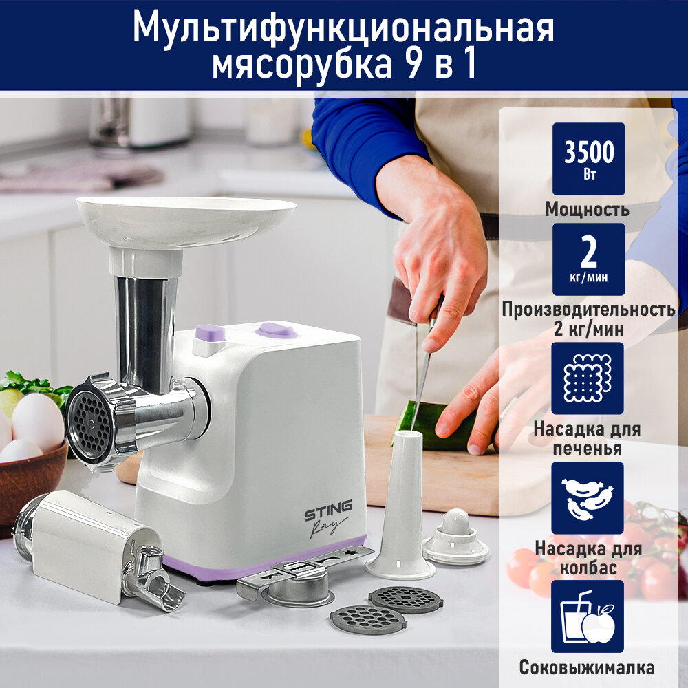 Мясорубка STINGRAY ST-MG2500A белый/лиловый интересное: