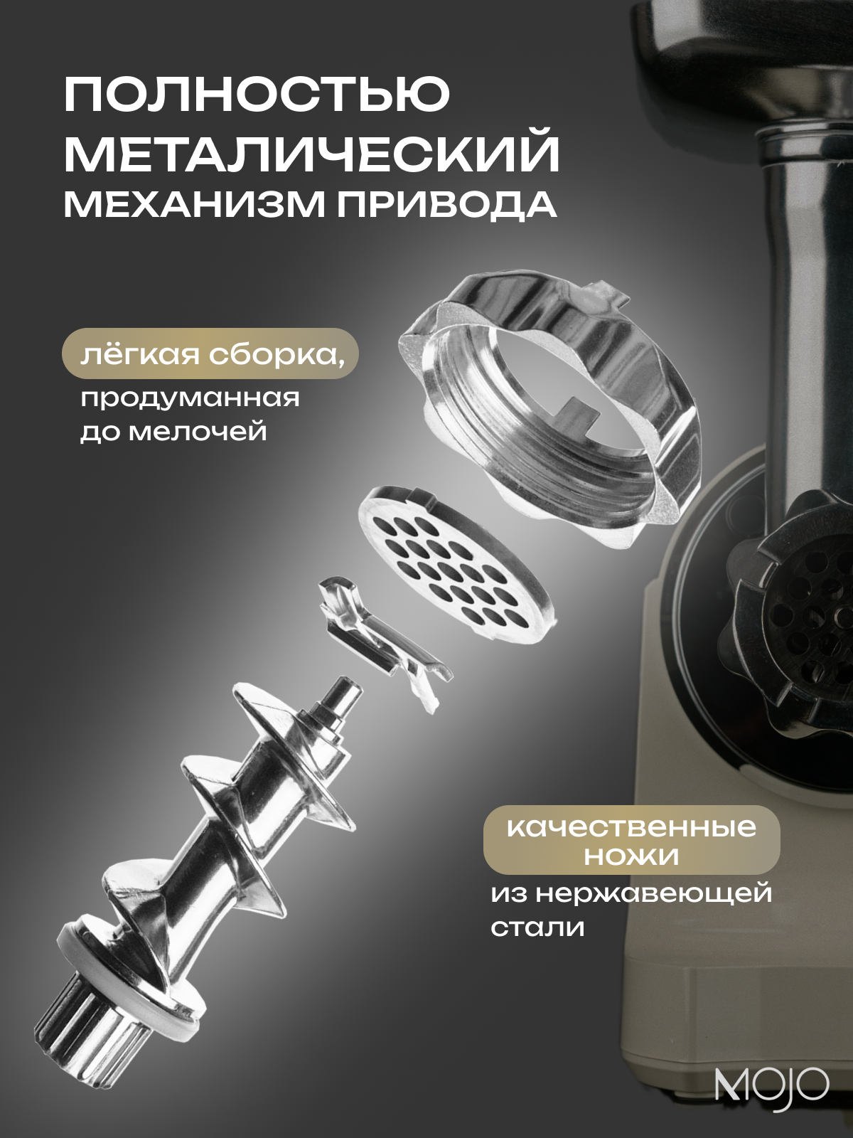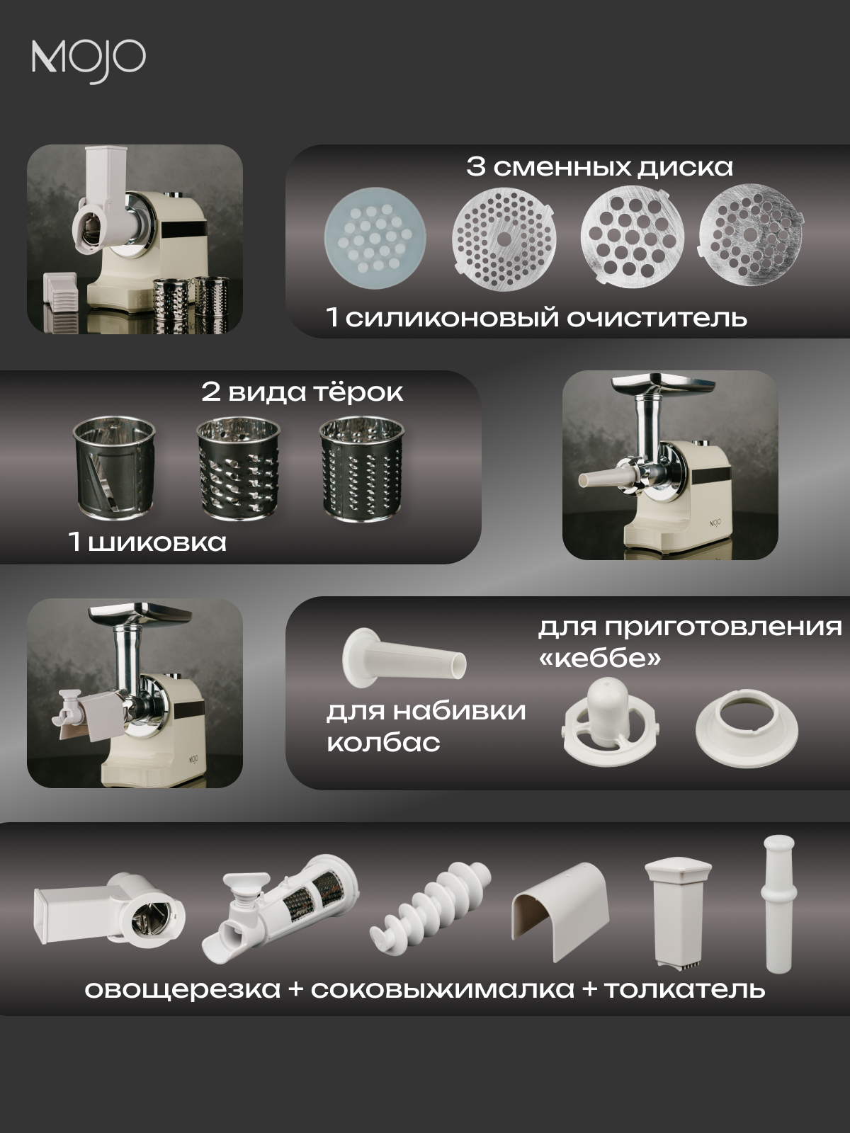 Мясорубка электрическая MOJO MJY-180-B с соковыжималкой и овощерезкой, 1800 Вт, с насадками, с реверсом интересное: