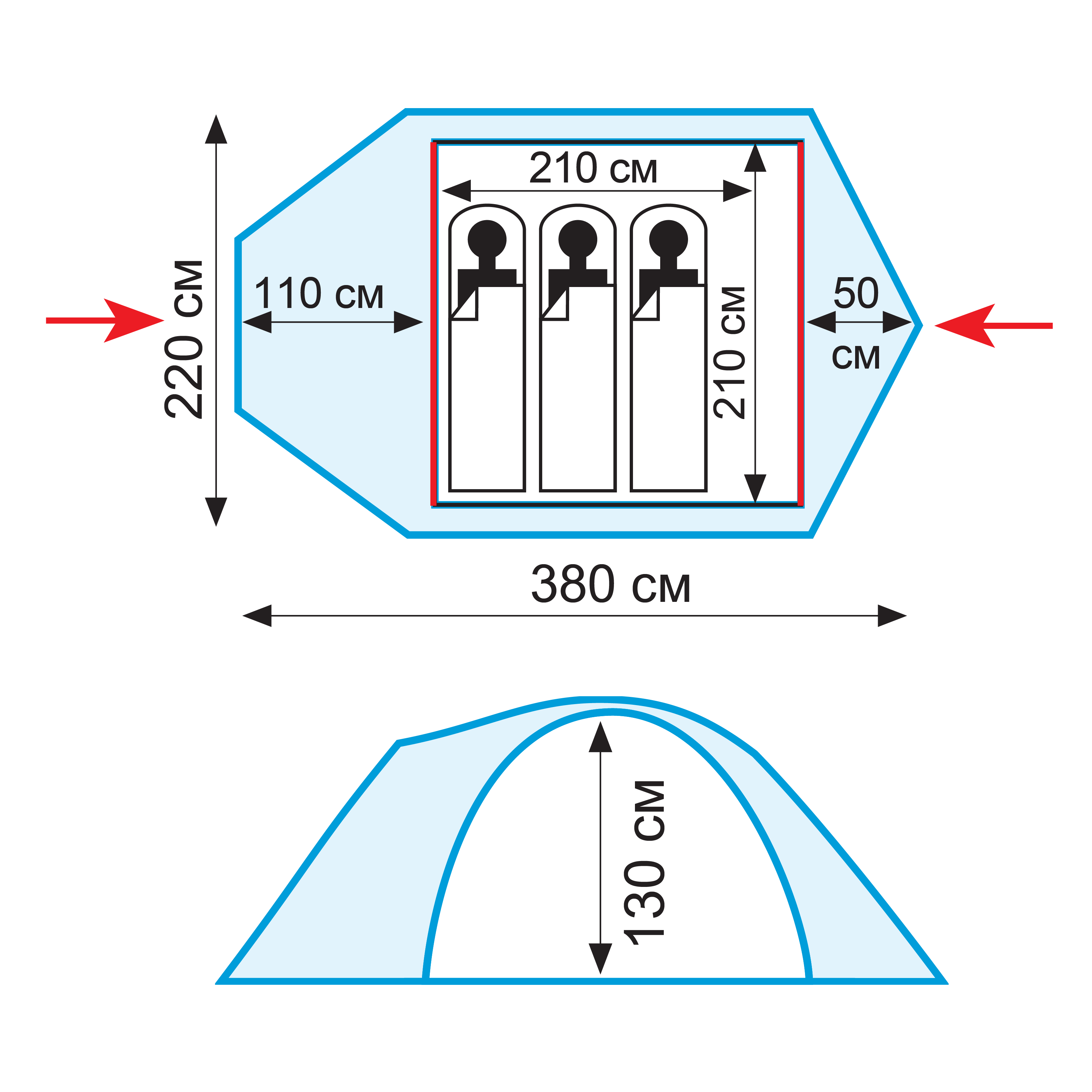 | Ширина внутренней палатки | 210 см |