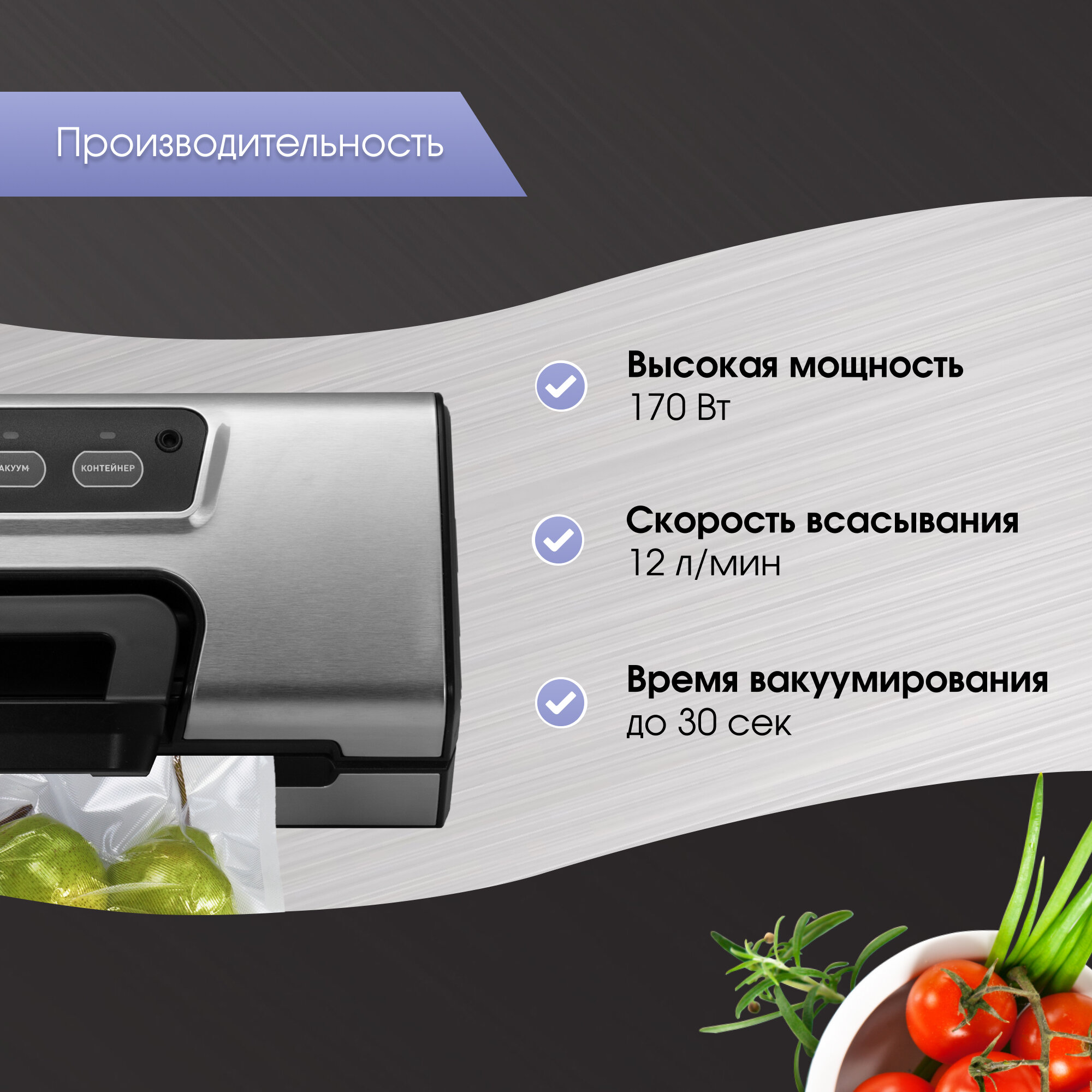 | Назначение | вакуумирование / маринование / упаковка |