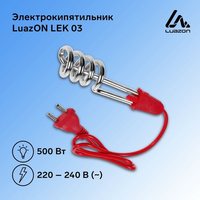 Электрокипятильник Luazon LEK 03, 500 Вт, спираль пружина, 16х3 см, 220 В, красный (1шт.) интересное: