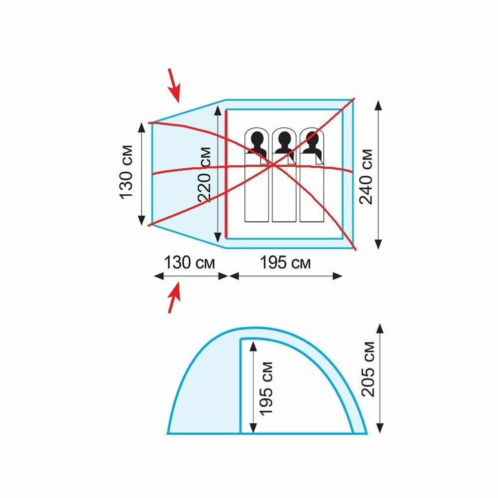 | Габариты внутренней палатки(ДxШxВ) | 195x230x195 cм |