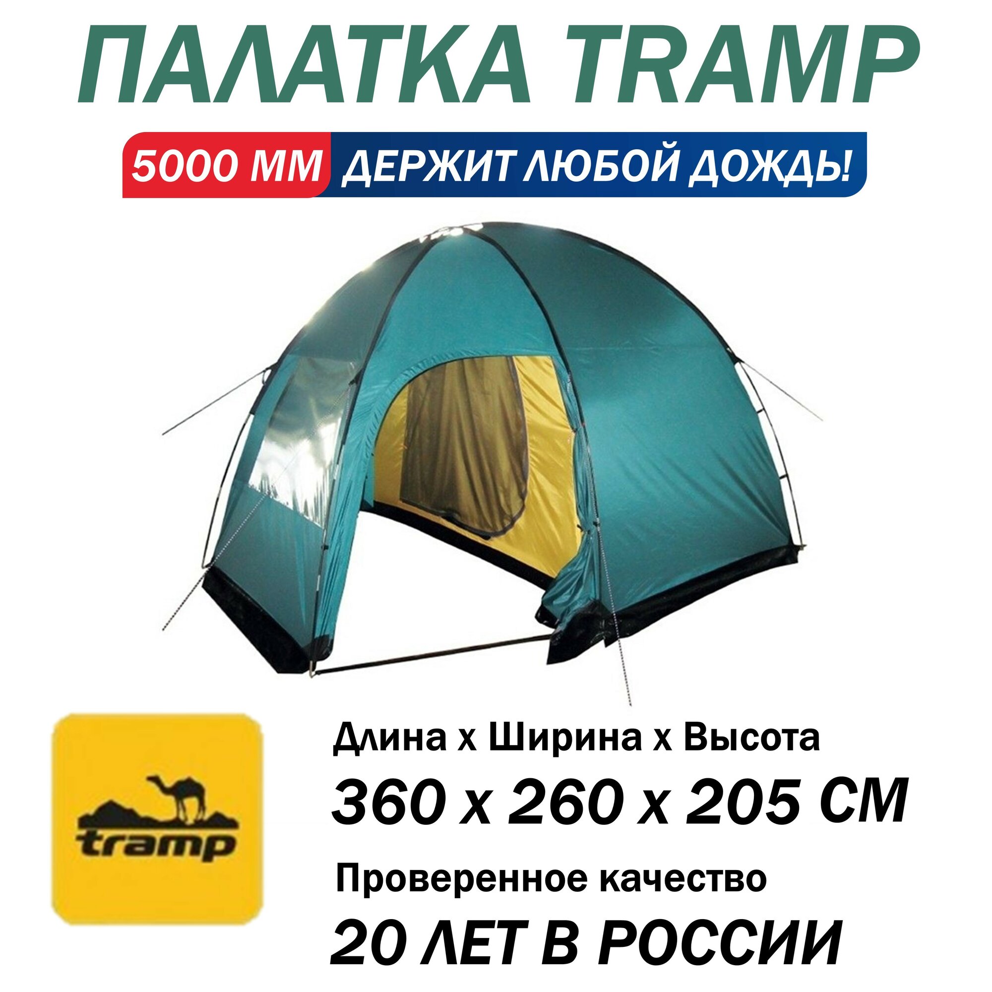 Палатка Tramp «Bell 4 V2», кемпинговая, внешний каркас, двухслойная, 4-местная, 5000/10000 мм, 8.9 кг, зеленая